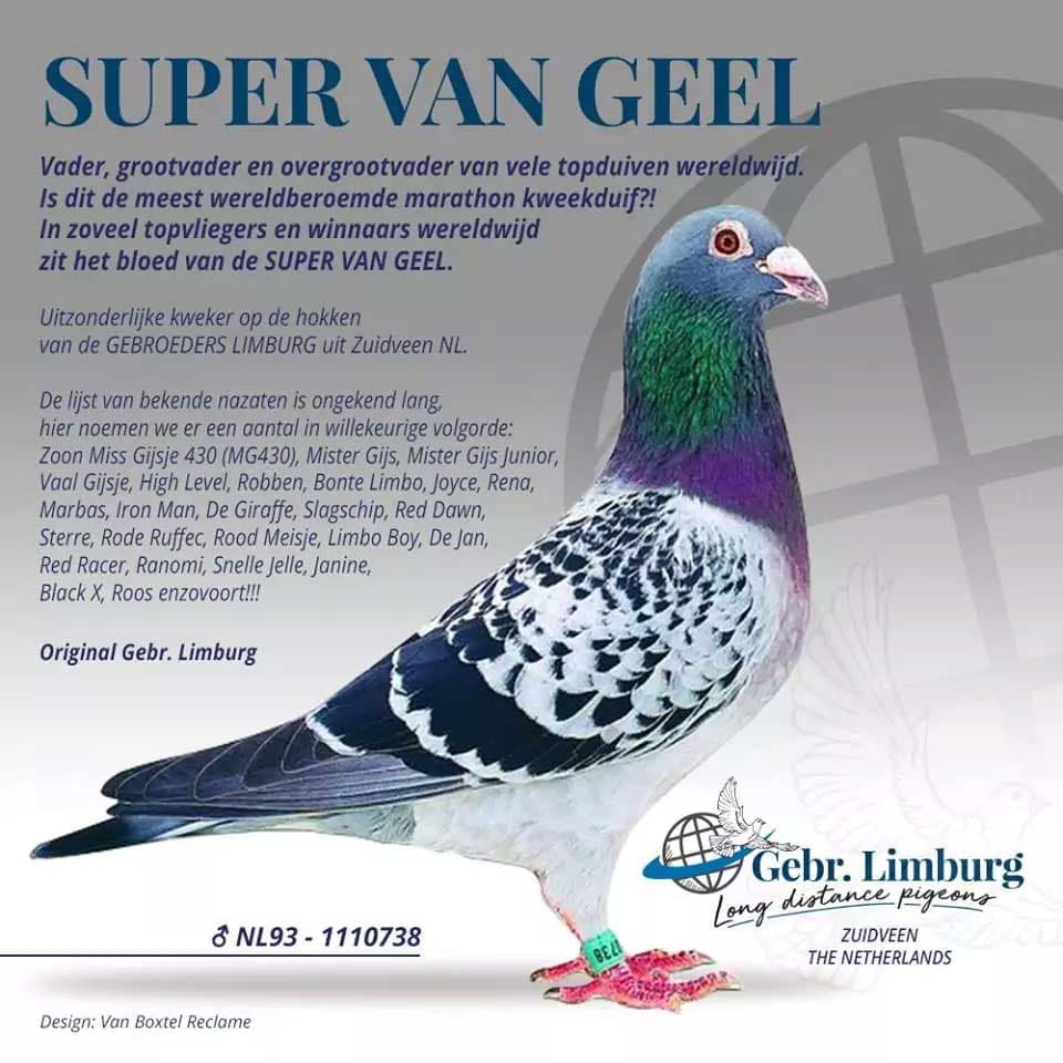 “Super Van Geel” is father and grandfather of 25 pigeons, which won in the Top Ten positions in the National long distance races.