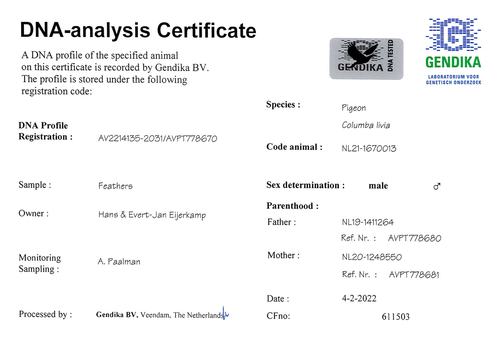 Breeder: EIJERKAMP HANS & EVERT-JAN 汉斯 & 艾佛特-杨·爱亚卡普