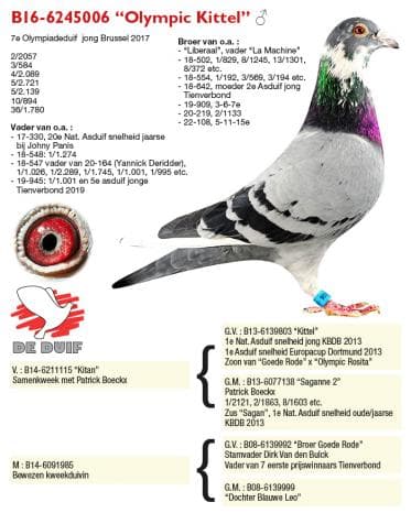 1st Nat. Olympic Ace pigeon Y.B. Cat. F 2020
