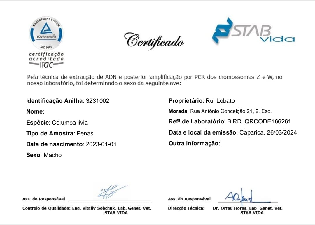 Breeder: PENAS, NOGUEIRA & LOBATO RACING PIGEONS 皮纳斯、诺盖拉&洛巴托