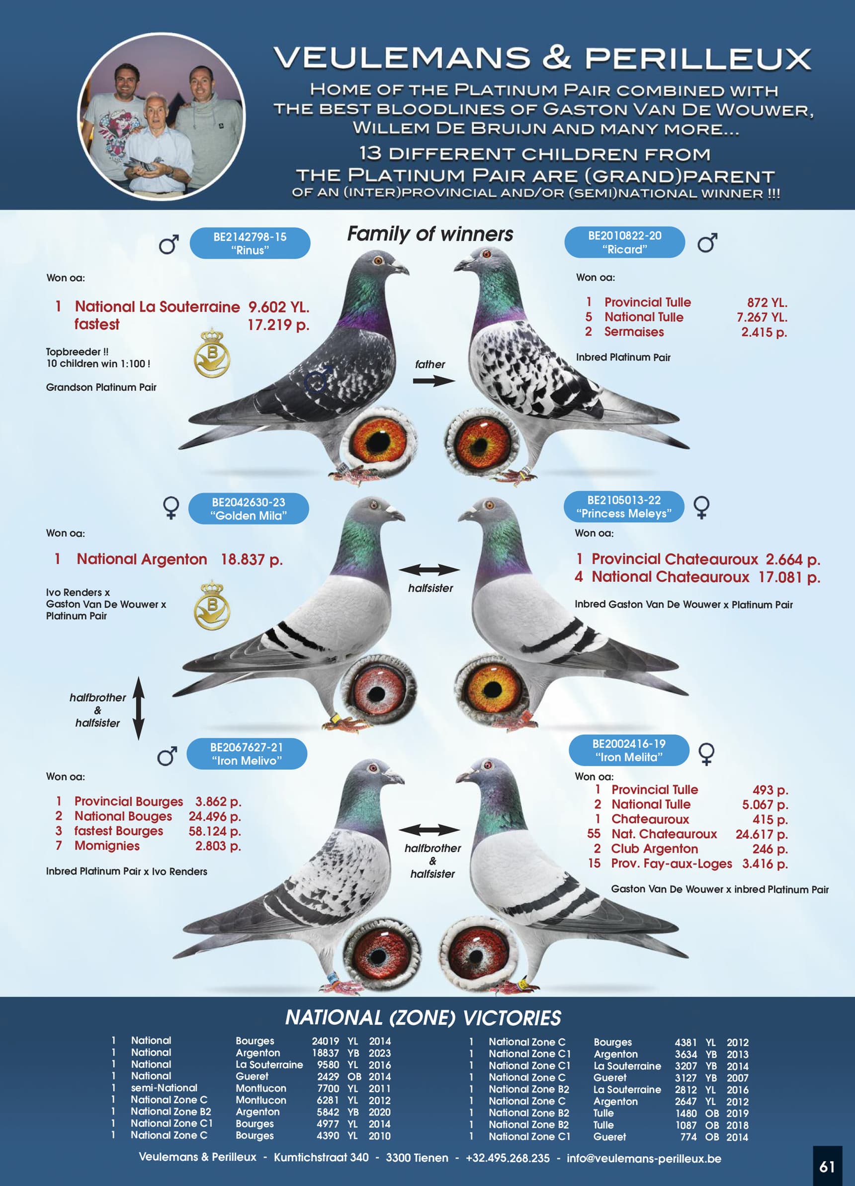 Is a full brother to famous “Uranus” (won: 2e Nat. Asduif jong NPO, 3e Nat. Asduif jong WHZB/TBOTB ’16, 2e Nat. Asduif jong Ranking ’16 and is current base breeder at Willem de Bruijn)