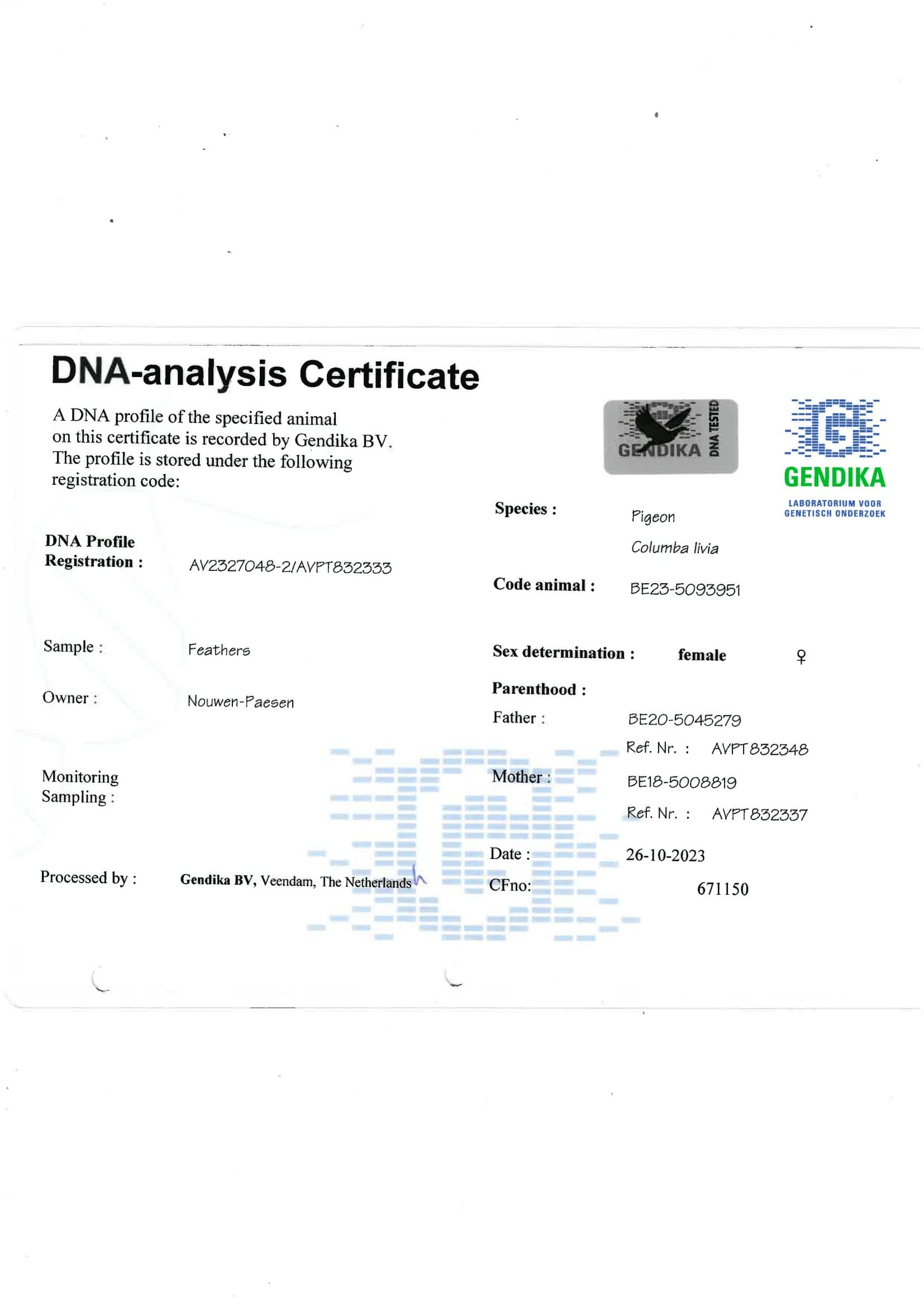 Breeder: NOUWEN - PAESEN 诺文-帕森