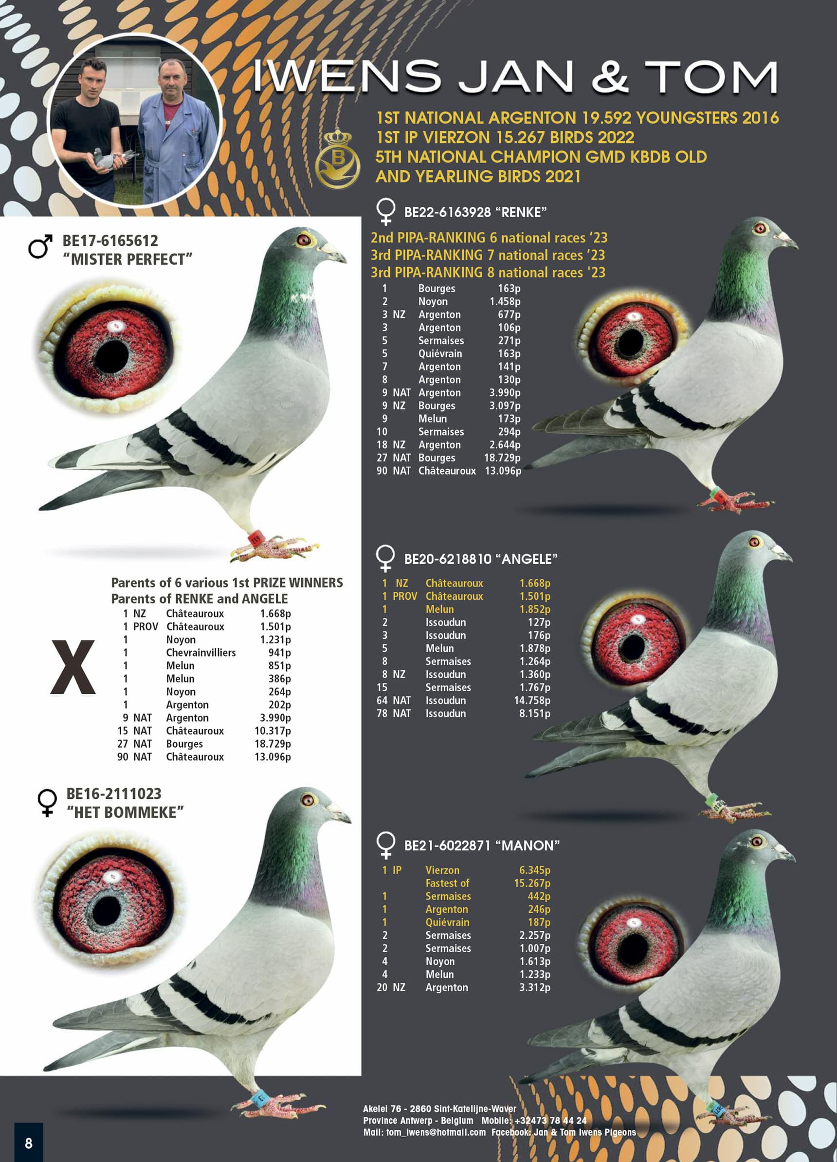 Born out “B07-6385735” (original Gaston Van de Wouwer - half-sister “Snow Rise” – Cleirbaut) x “Mieke” (won 2nd ace Fondclub Antwerpen)