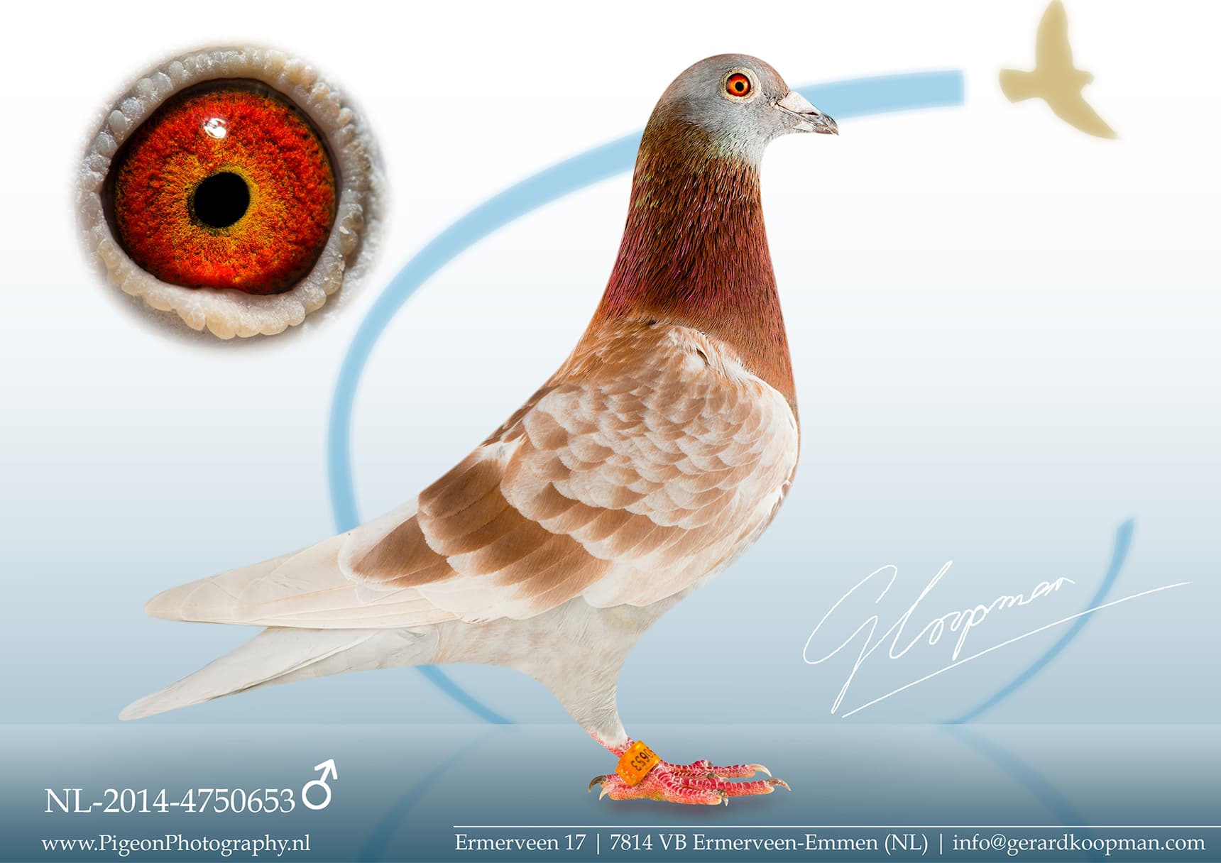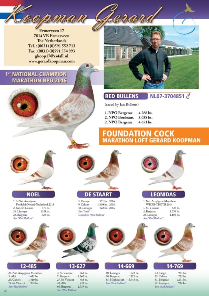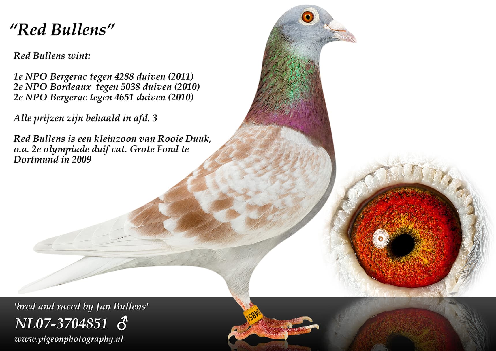 Inbred to Den Rooie Duuk. He was just like his grandson Red Bullens a phenomenal racer on the marathon! Also he grew into an absolute legendary breeder in the pigeon sport. Grandchildren, great-grandchildren and great-great-grandchildren fly at the national top.