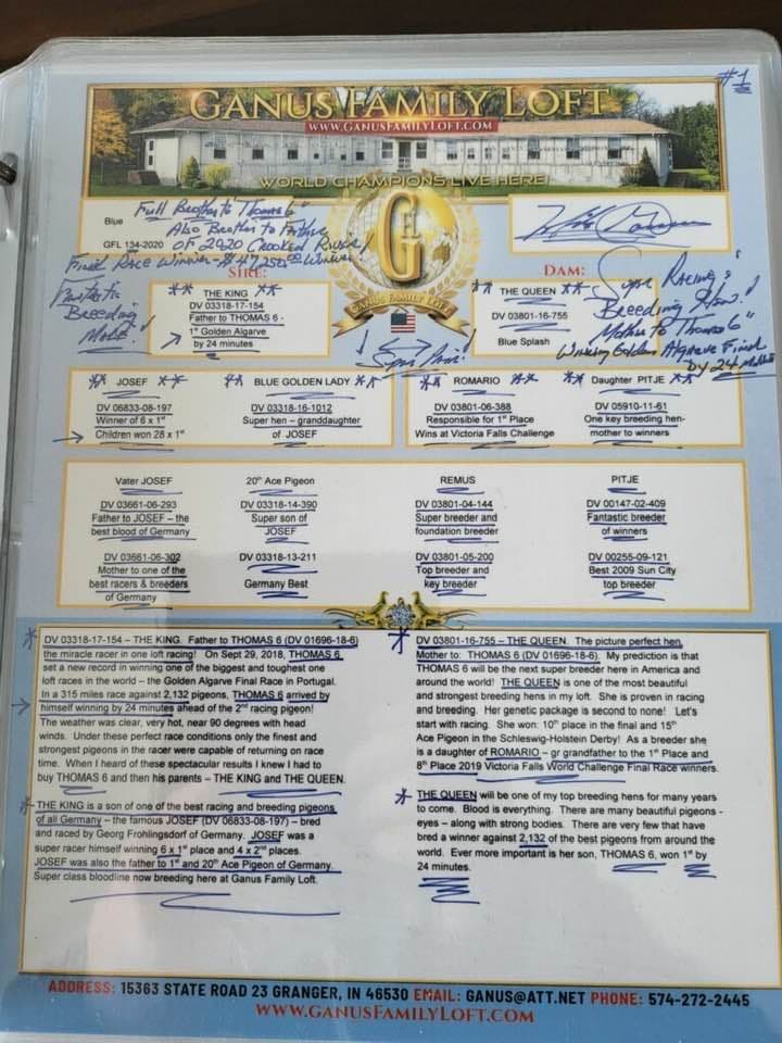 2. Son Romario x Daughter Laura – Note: there are very few direct children and grandchildren of Romario, and I have 2 direct children and several grandchildren.  Note:   Romario Line is Great. 4 x Big Winner One Loft Race, 2018 and 2019 Golden Algarve and also 2014, Victoria Falls Winner 2019