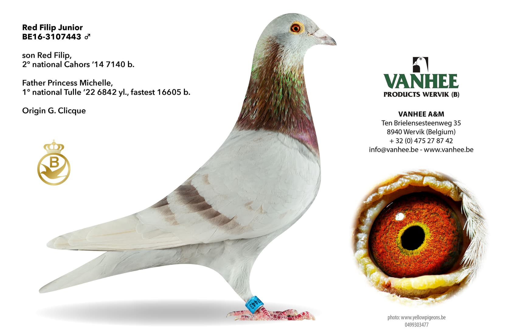 Wervik: The name "Vanhee" rings like a bell in the international pigeon world. Grandfather Gerard Vanhee started pigeon racing as a 15-year-old guy in 1925. Gerard was a man with ambition and possessed the unprecedented urge to buy super pigeons. If he knew one, he was at the front door of the relevant fancier in no time and was only satisfied when the "crack" was in his pigeon basket. His search for superior pigeons was, in those days, rarely seen because thanks to the crossing of these superior pigeons, Gerard bred his "own strain", read "breed" that, from the 1960s to the early 1990s, dominated the long-distance races and dominated Belgian pigeon racing. When son Michel became more and more involved in pigeon sport at the end of the seventies, beginning of the eighties, and even took over the torch from father Gerard in the loft, he not only changed the approach in terms of care but also the breeding strategy of the Vanhee team was rewritten. Father Gerard was in favour of "crossbreeding", but Michel thought it was a shame that the superior characteristics of the created basic lines such as "Motta", "Iron", "Remi", "Patrick", "Monsieur", "Bambino", "Atom", "Dreamer" etc... would just be lost through crosses. Therefore, he tried to capture the dominant traits of these breeding lines through close inbreeding and embed them in his lineage. When such an inbred product then met the set external requirements, he or she was usually immediately assigned a box in the breeding loft. Here, he/she was then paired with an "inbred product" from another breeding line, or paired with an unrelated pigeon of top-origin.