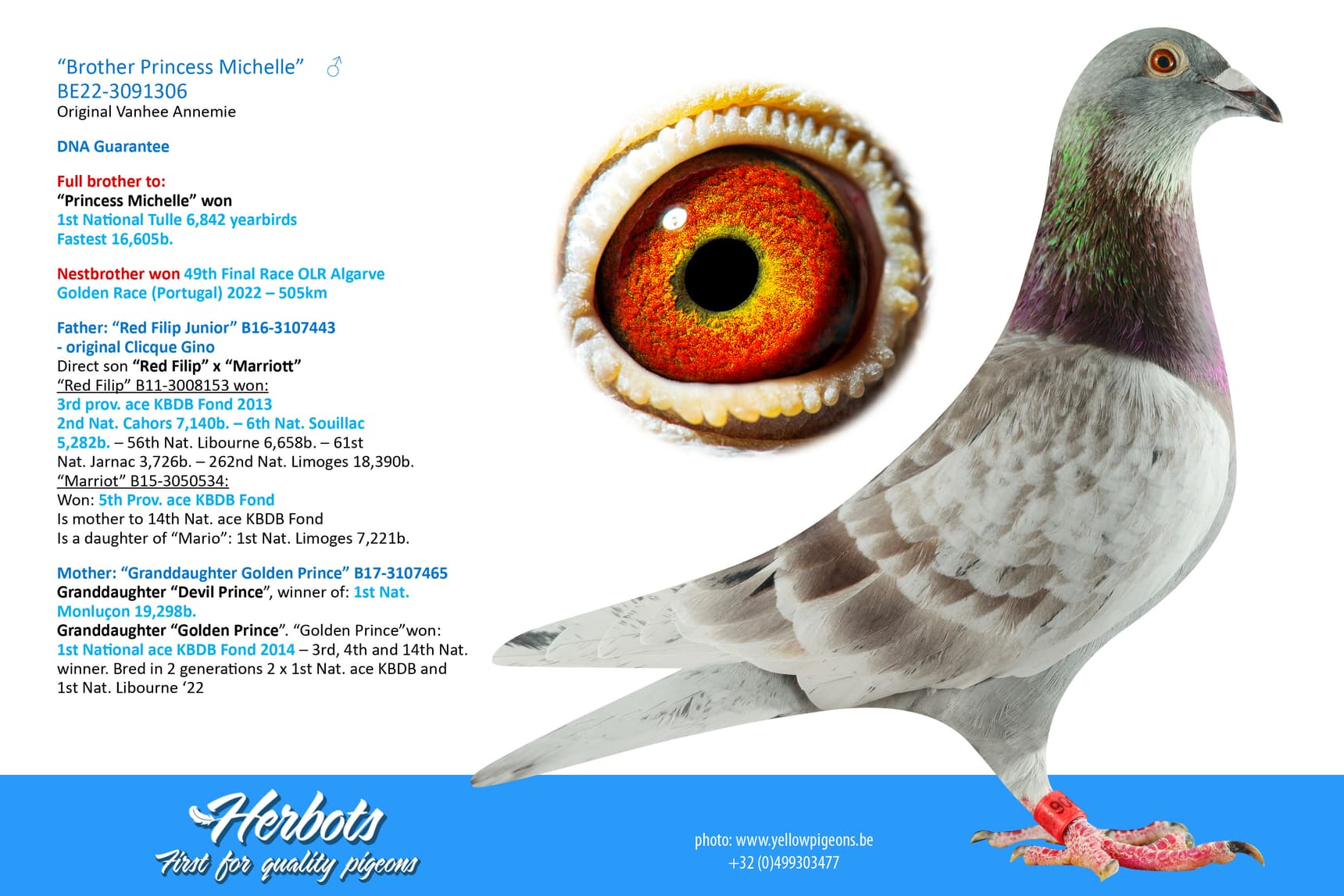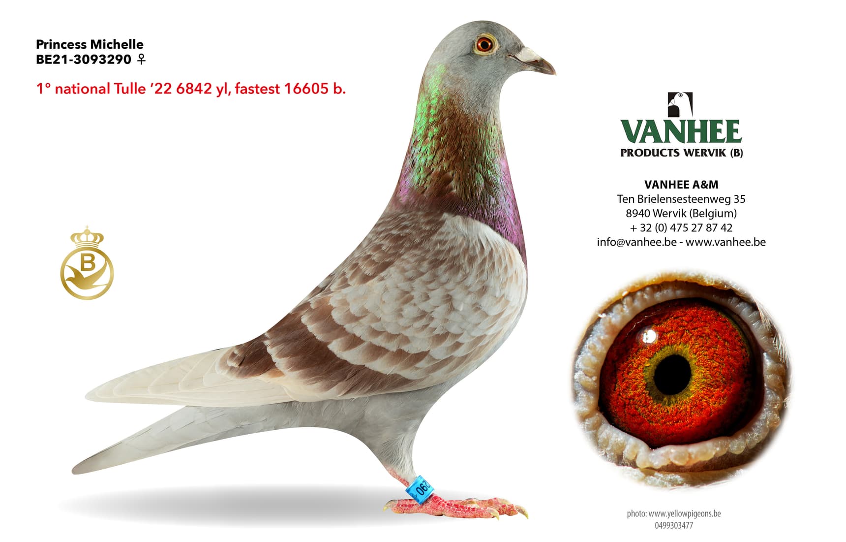 Another highlight of the 2022 season was winning the national victory from Tulle. For this brilliant victory, "Michelle Princess" . She not only showed the 6,842 yearling birds her tail, but was also the fastest of all 16,605 Tulle racers
