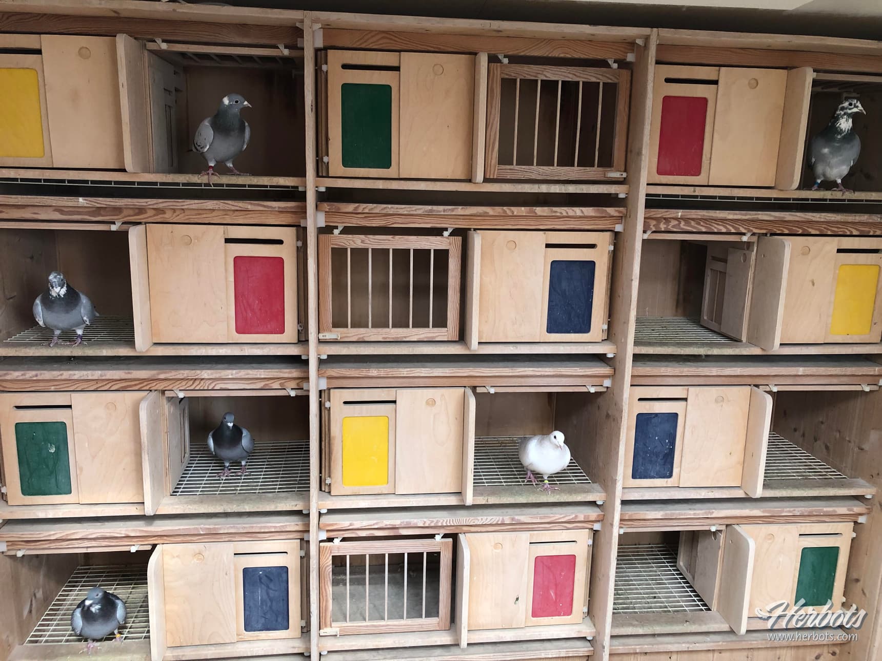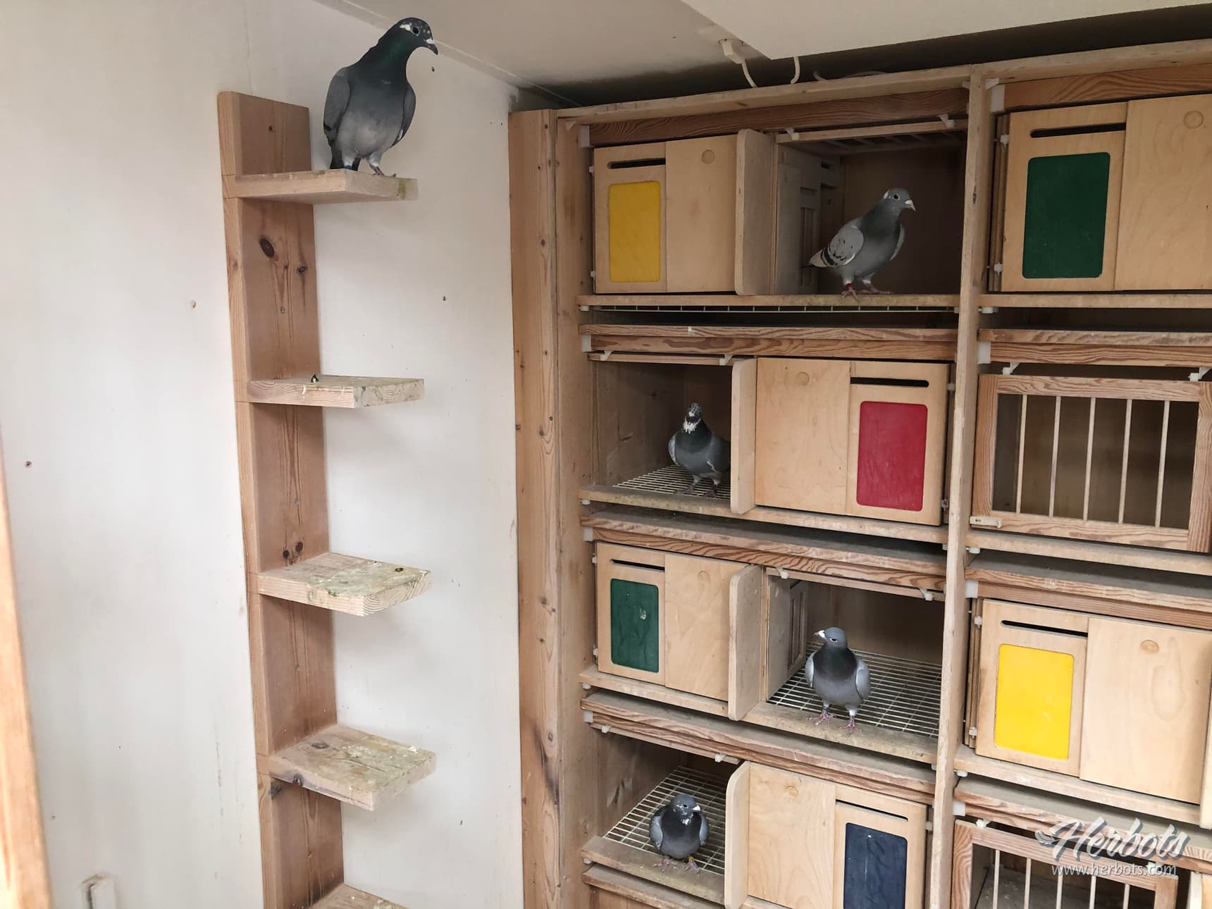 The widowers are coupled between 1 and 5 March and raise a youngster themselves at the start of the season. The hens of the widowers are taken away after the youngsters are about 10 days old. The hens are coupled 14 days later and are prepared for the season in the same way. Once all pigeons have laid, they go back outside so that they quickly get back into the rhythm.