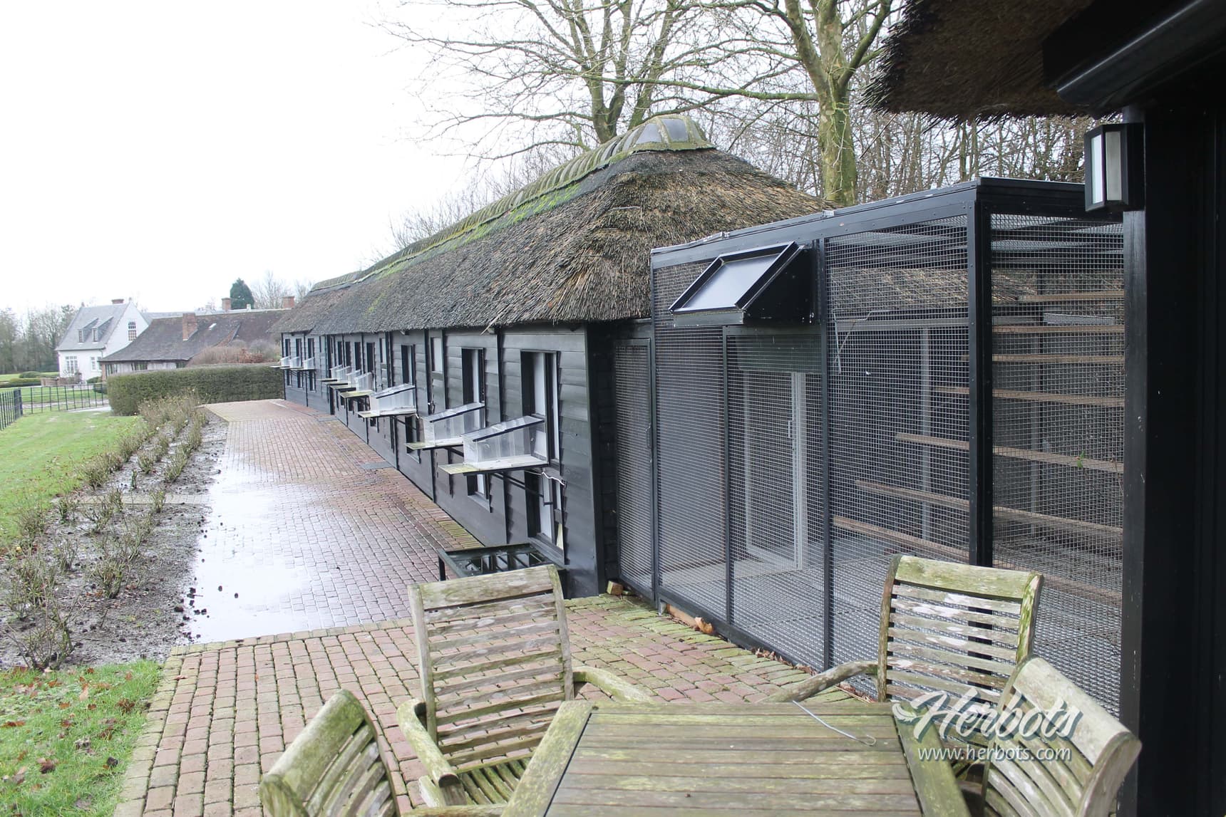 • The pigeons are not darkened before the season, and there is a good reason for that.  The lofts face south-west (more west than south). In addition, there are a lot of large trees in the eastern direction and then the lofts only get full sun in the afternoon. In case of high temperatures or very bright sunshine, screens are available to provide some cooling if necessary.  The roof of the lofts is a thick layer of thatch which also provides more stable temperatures.