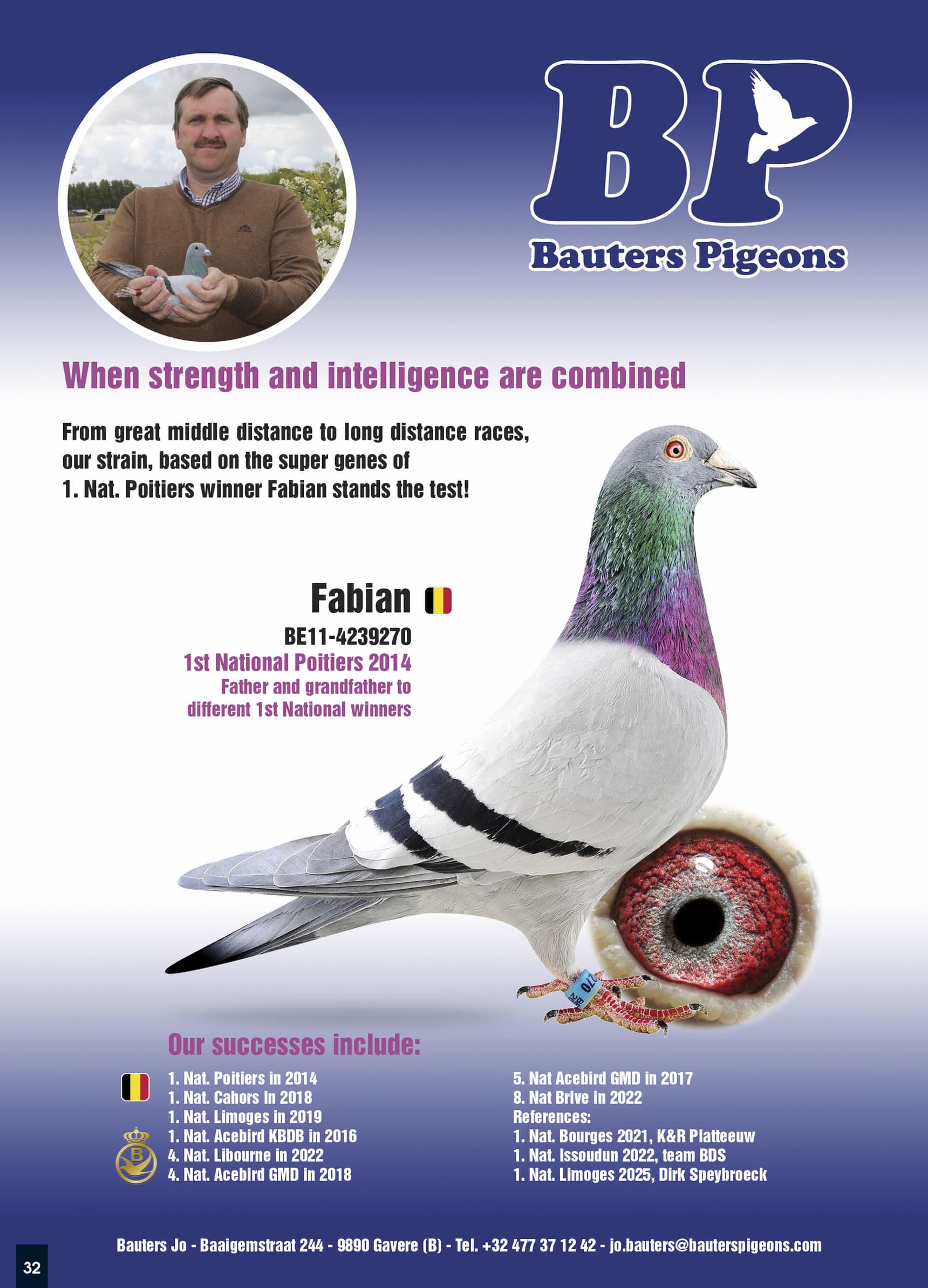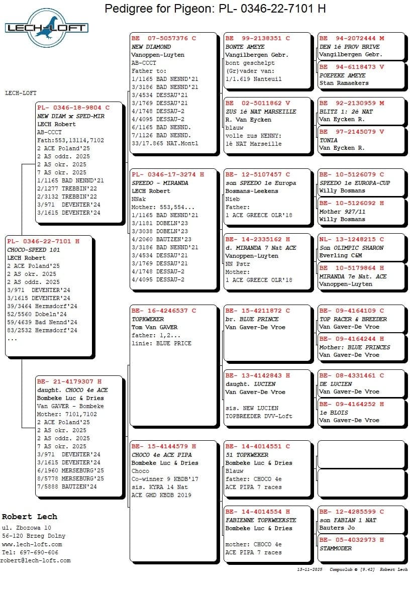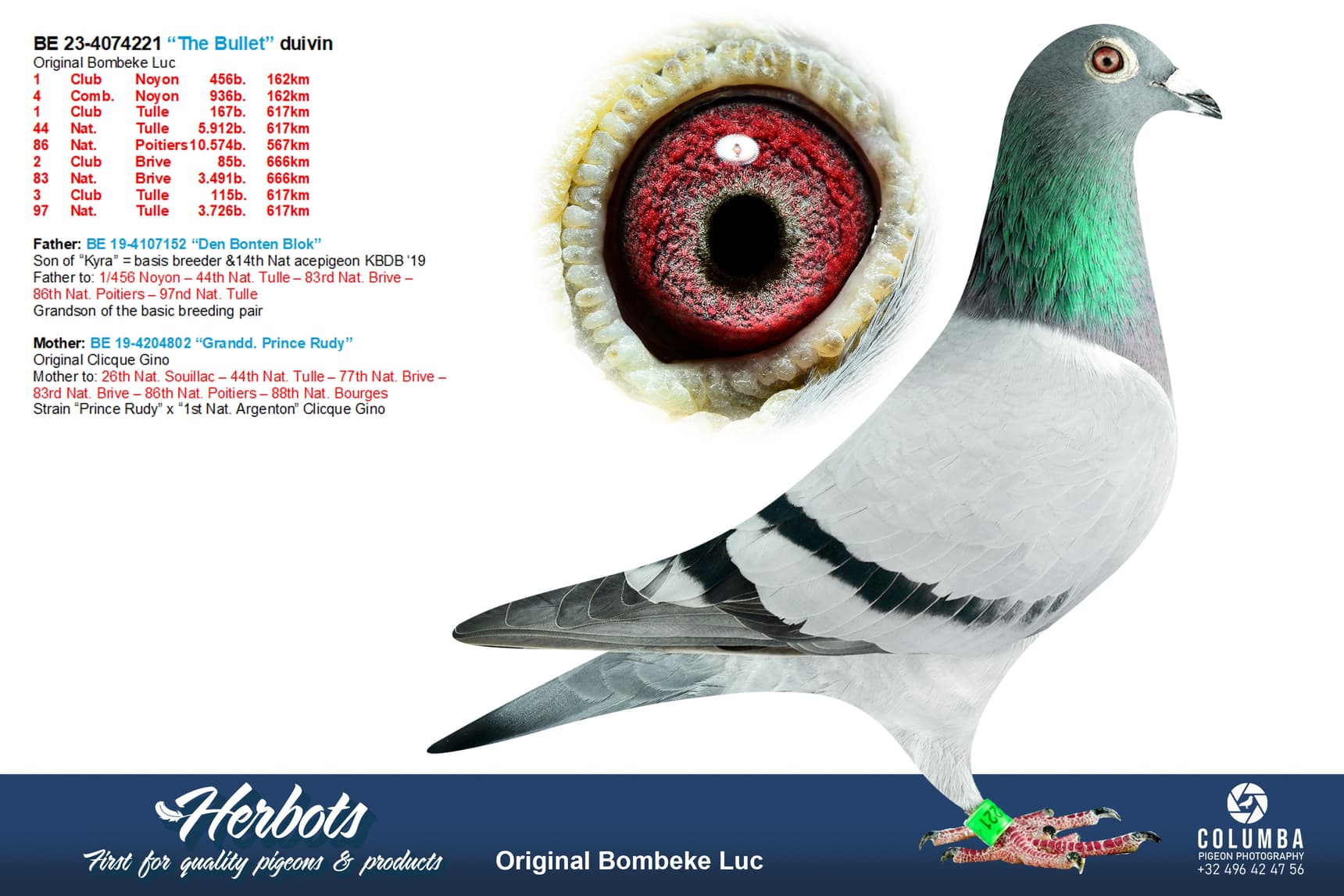 In Purchase 2 of part 2: BE 23-4074221 "The Bullet" = granddaughter "Kyra": 14th National Pigeon Heavy Middle Distance and the best lines of the Clicque loft can be found here.