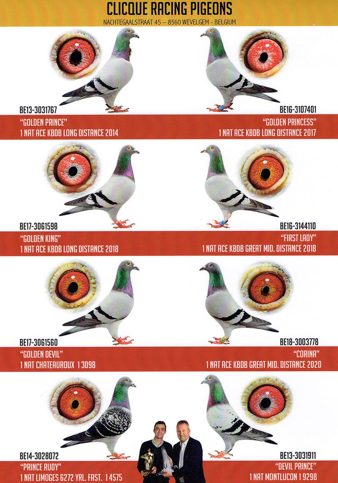 In the years 2019 and 2023, Luc and Dries also invested in strengthening Gino Clicque. They added grandchildren of such champions as Golden Prince, Prins Rudy, several national winners and national ace pigeons.