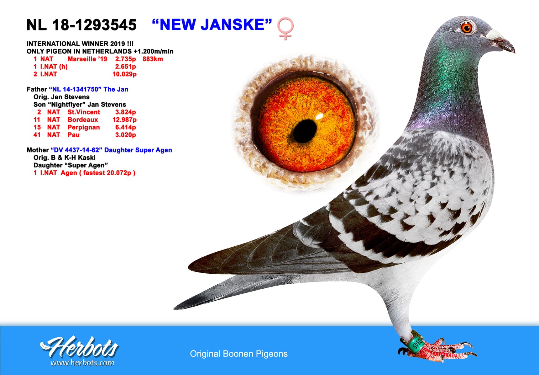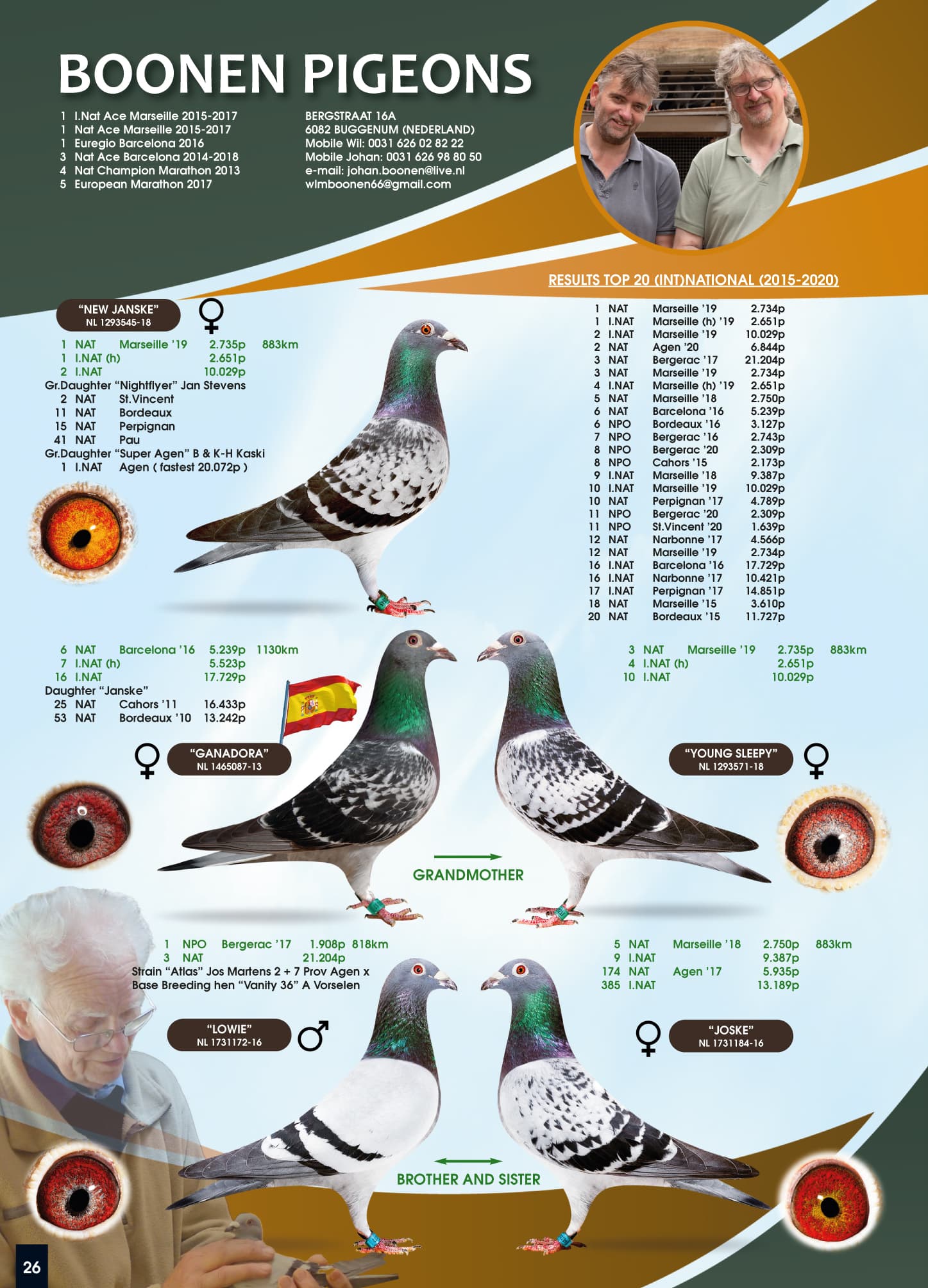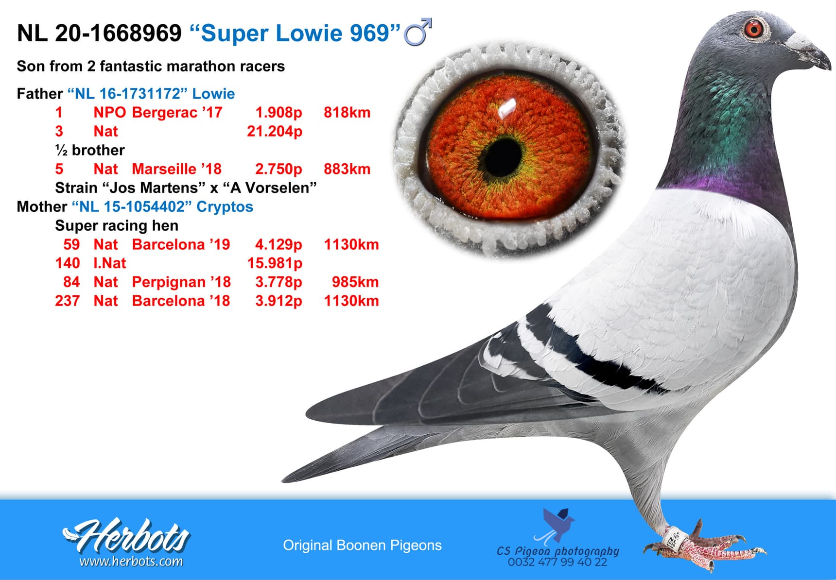 In 2017 they won with NL 16-1731172 Lowie the 1st NPO Bergerac against 1,908b over a distance of 818km. He also won 3rd National Holland against 21,204 old pigeons. Also he is out of a family of top pigeons as his full sister wins in 2018 the 5th National Marseille against 2,750 old pigeons.