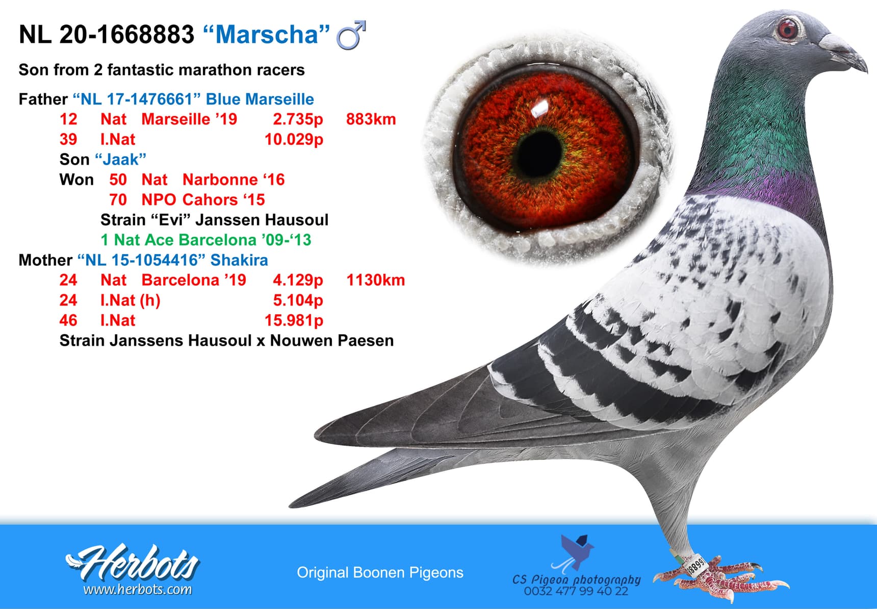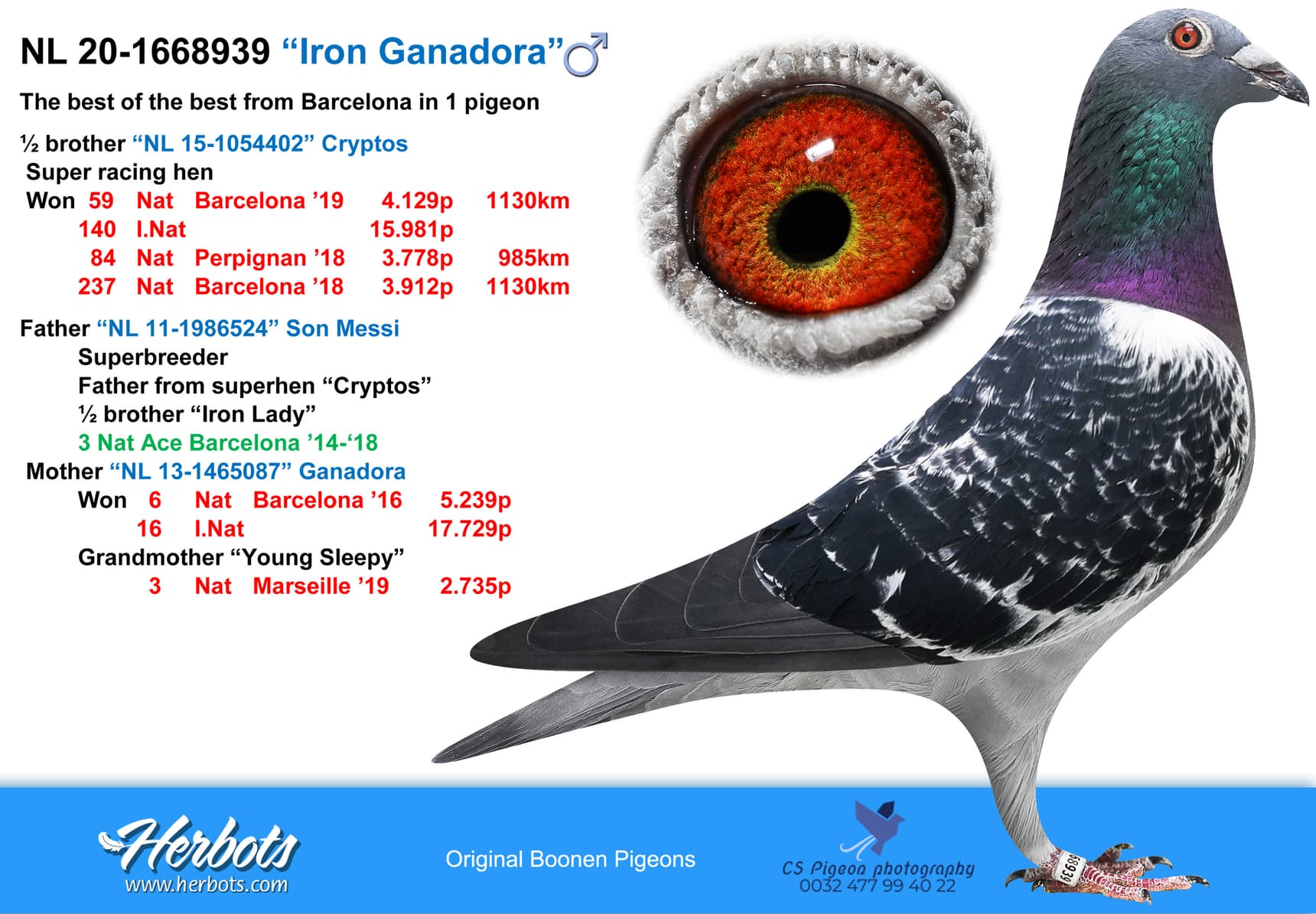 This topper NL 17-1476661 won 12th National Marseille in 2019 and comes out of the best Barcelona blood what is to be found in their lofts.