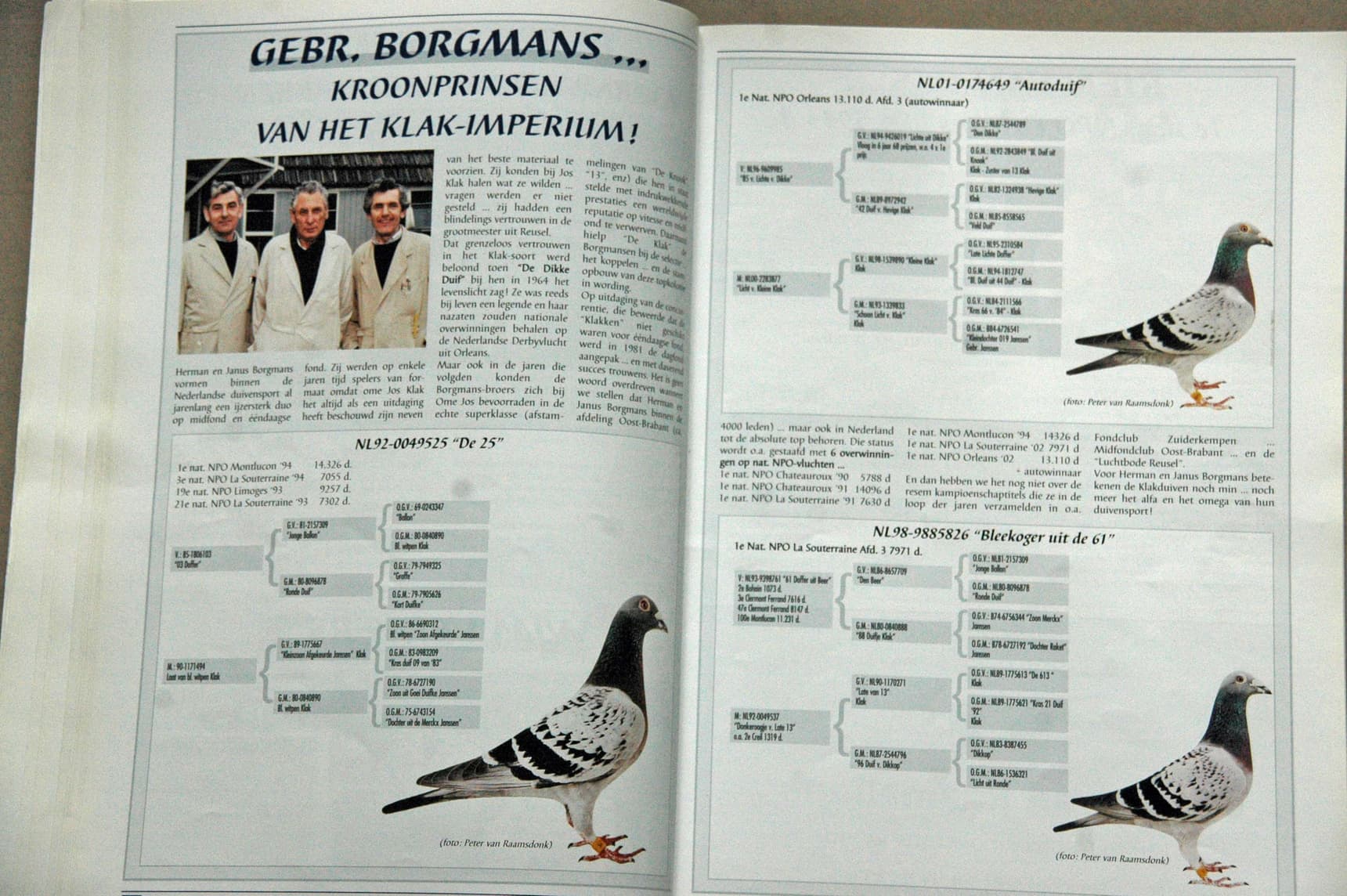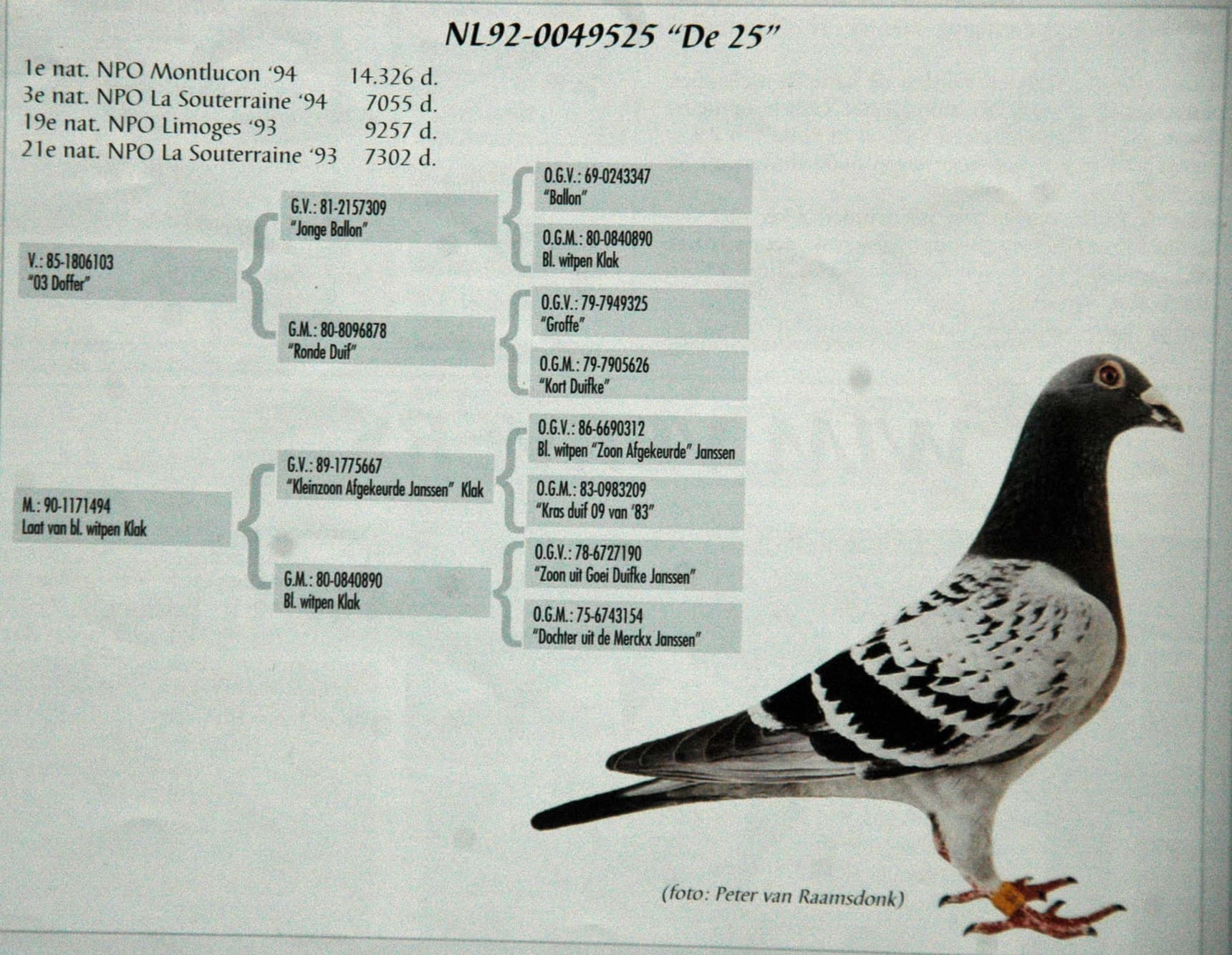 One of these winners, the legendary ‘25’ (NL92-0049525), unfolded itself together with the best pigeon Jos van Limpt-de Klak owned, the ‘613’ (NL89-1775613), to fathers with an excellent strain. The achievements the descendants of these unequalled pigeons, who can be found at the Borgmans’ own pen as well as Jos de Klak’s, achieve all over the world is truly unbelievable!
