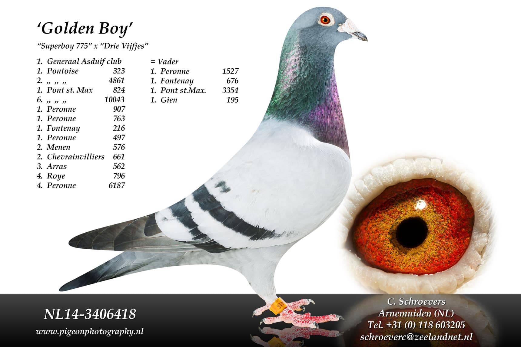 This direct Van Eynde-Goovaerts cock comes out of a grandson of the known “Kaasboer” from Gaston Van De Wouwer and out of the “253 Vichy-hen” from Van Eynde-Goovaerts. “Superboy 775” raced himself really hard and became 6th National Ace bird youngsters TBOTB.