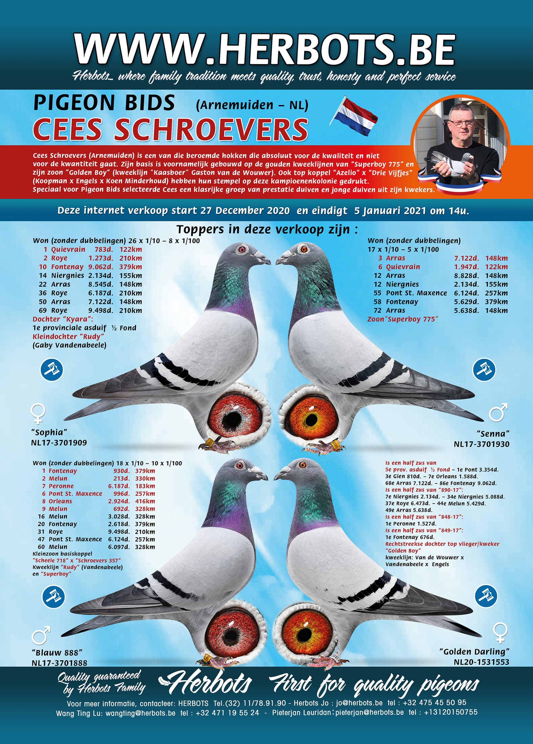 Do you also want to enjoy the class of the Schroevers pigeons...don't hesitate and make your move on the current online auction PIGEON BIDS SCHROEVERS CEES.