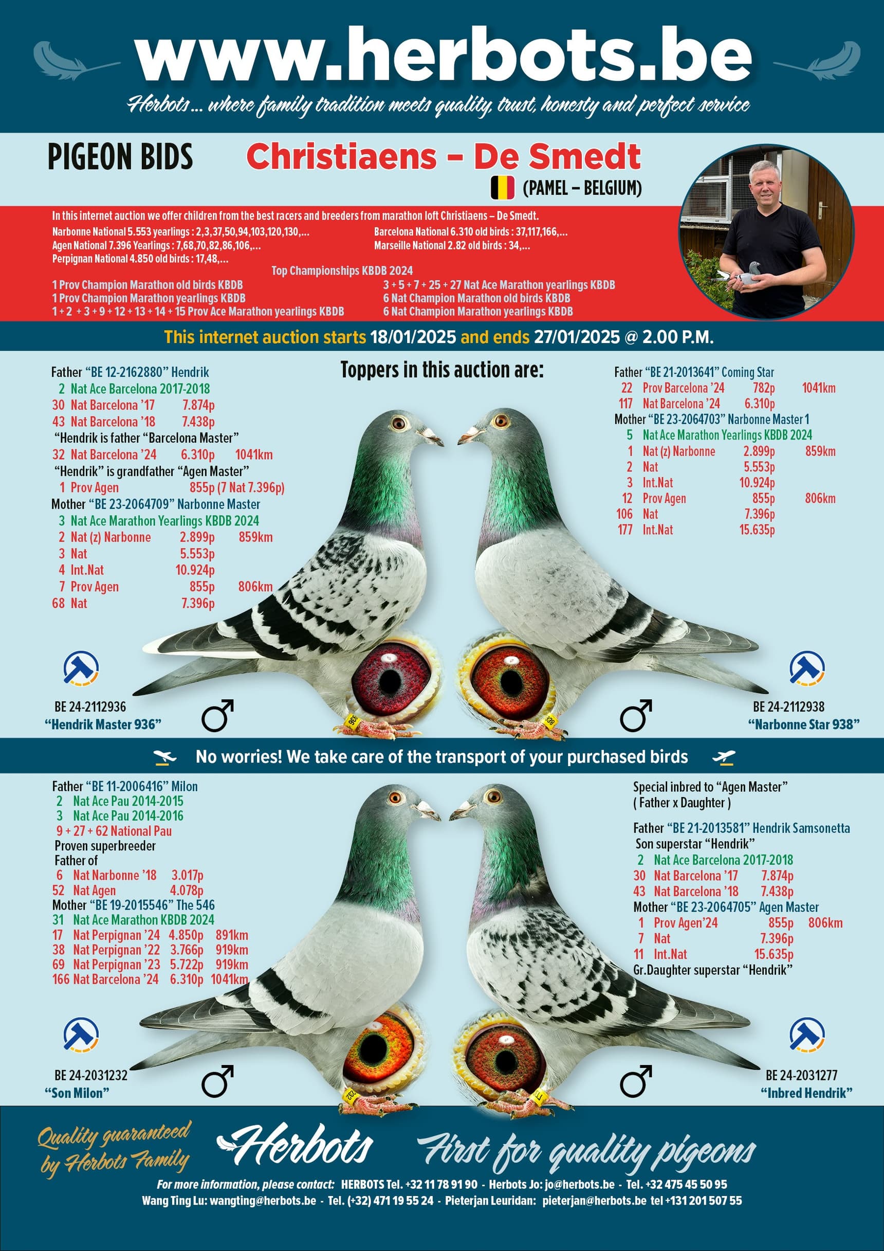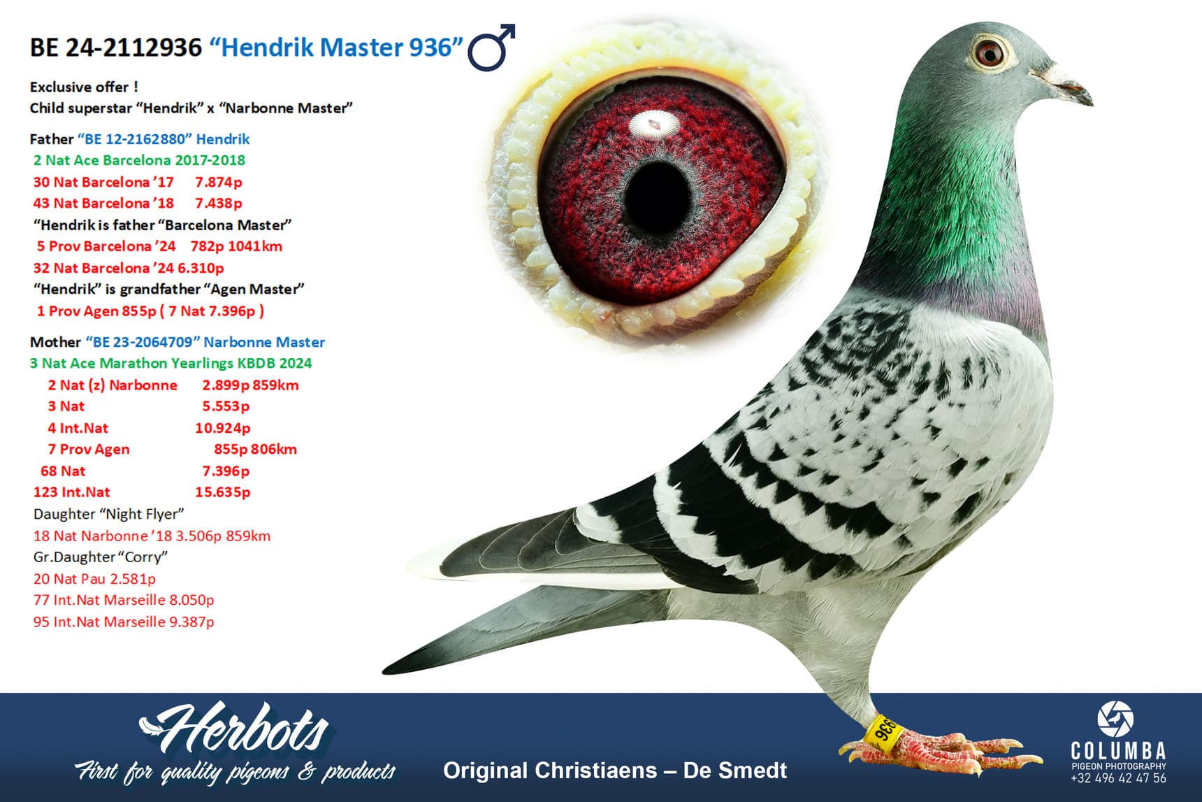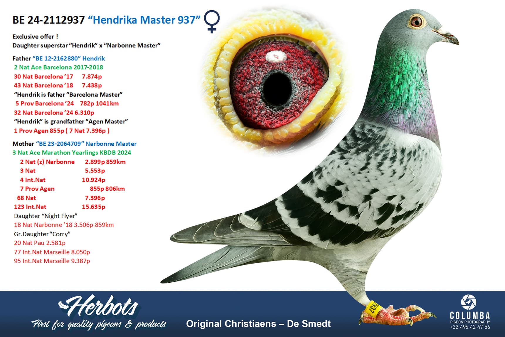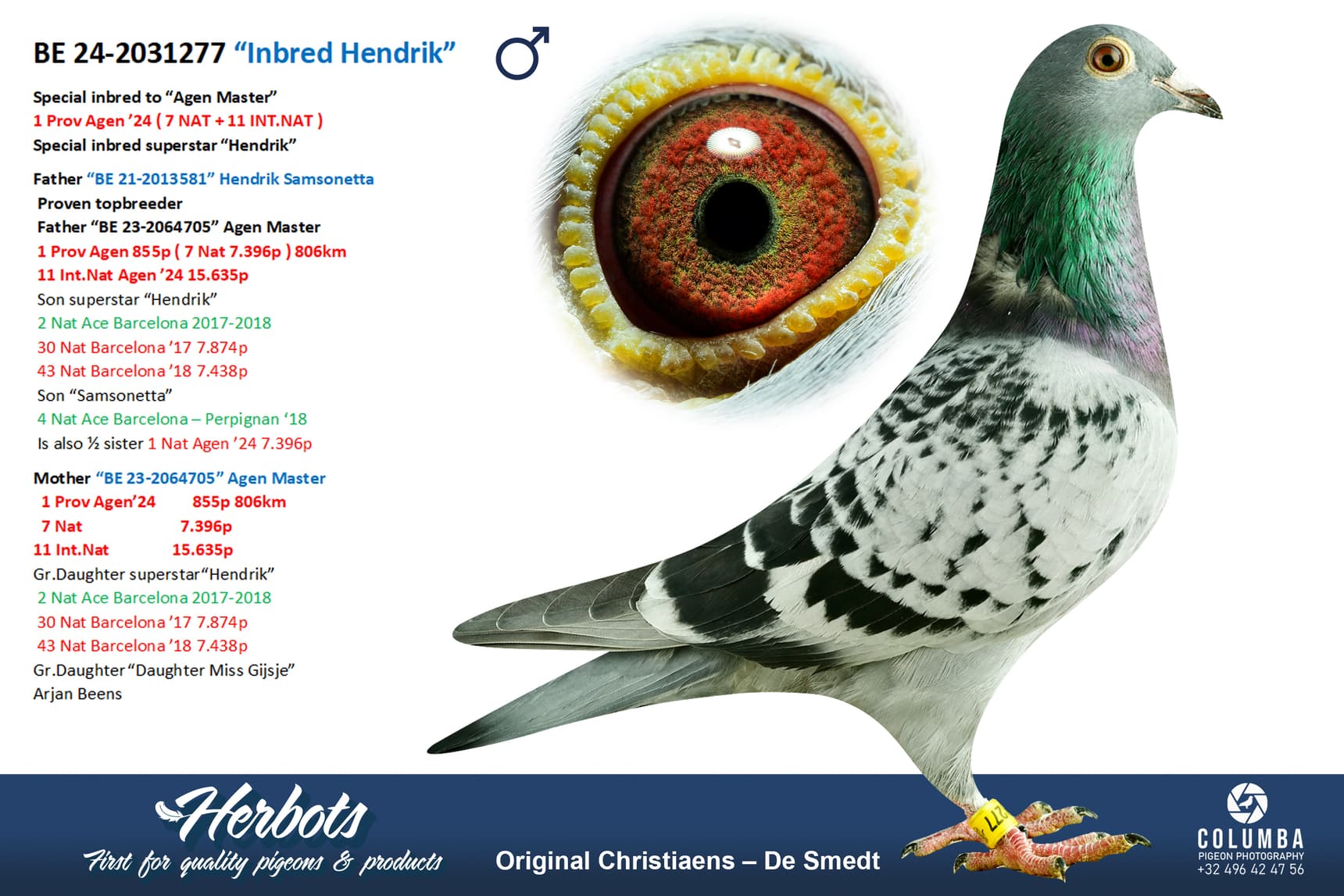 Son of “880/12” Hendrik is 2nd National Ace Pigeon Barcelona 2017-2018, he won, among others, 30 Nat Barcelona and 43 Nat Barcelona