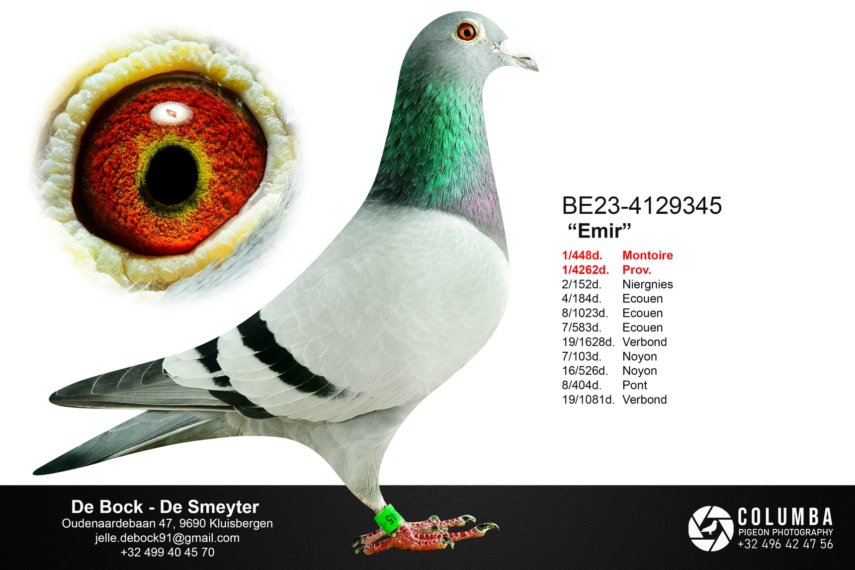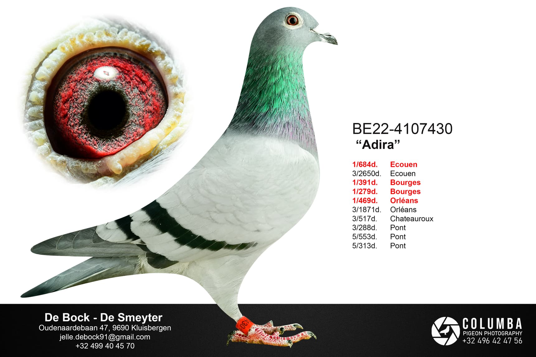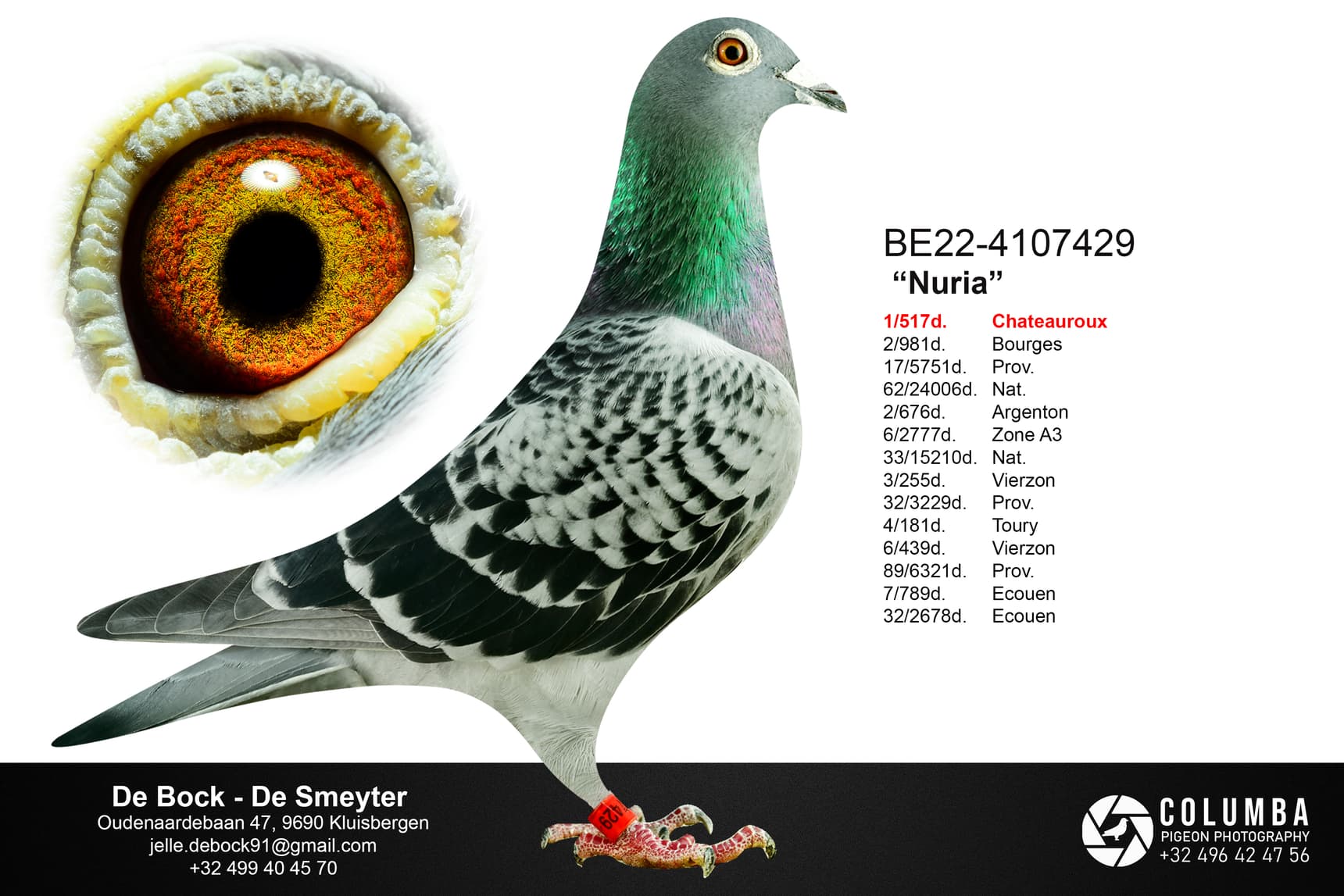 Royal Roche (BE15-4088435) is a combination of De Bruijn with Team De Jaeger and is father of several pigeons that flew 1st prize and above all father of the 1st national Bourges !