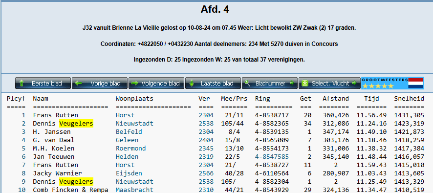 The race of the young pigeons also went well with 2nd and 9th NPO Brienne against 5,270 young pigeons, the first pigeon is a full brother of the 3rd arrival from Issoudun and the 2nd young pigeon is again a daughter of super breeder “Clementine”.