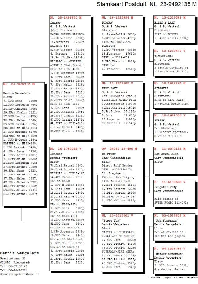 Daughter of “496/15” Grandson Rudy 100% Gaby Vandenabeele x “001/10” Super Sister is super of “Superman” 1 Nat Blois 33,709p