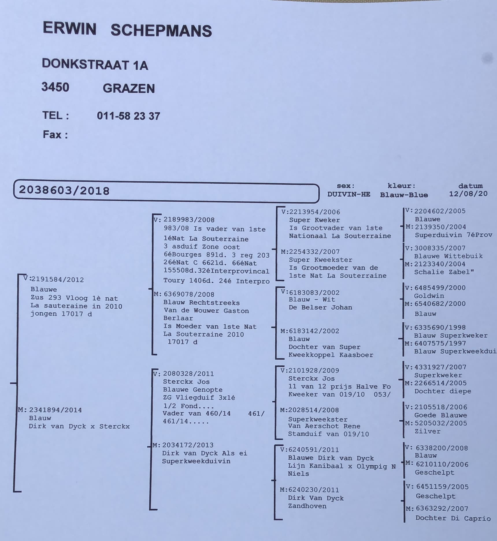 Son to “928/99” Son super breeder Jos Sterckx x “514/08” Daughter