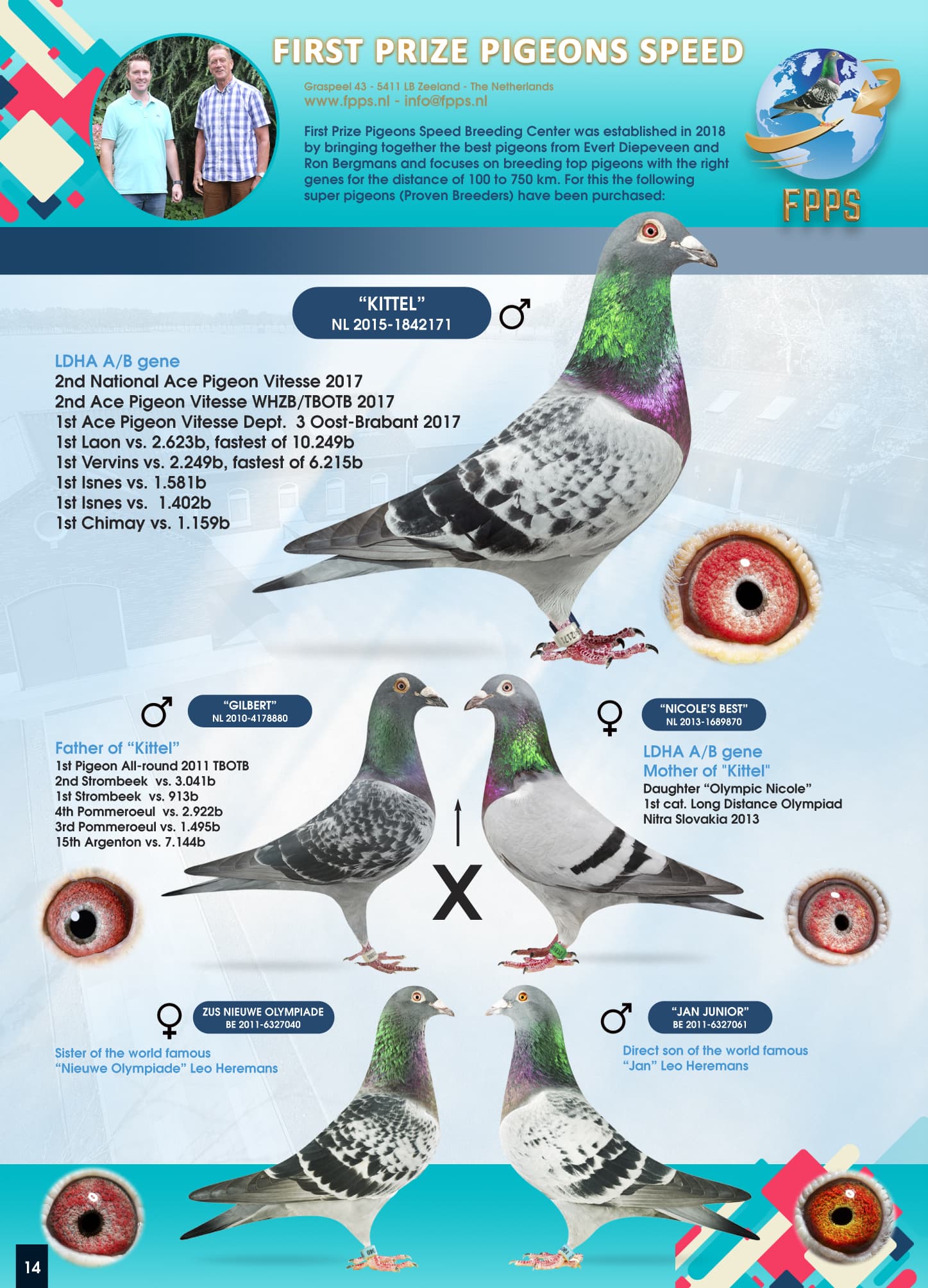 Breeding centres are a common good these days within pigeon sport. Most of the time they start of by investing a lot in proven pigeons or pigeons from a specific breeding line. Couples are being made and the off spring of these couples are being sold. A lot of breeding centres depend on the references of the buyers of the young birds to make a selection so it takes a while before the owner of a breeding centre really knows which pigeons are the best on his breeding loft. The men behind the breeding centre First Prize Pigeons Speed also known as FPPS aren’t that patient. A good investment policy, racing the off spring themselves on 2 satellite lofts and a partial scientific knowledge made that FPPS could set huge step forward in comparison to other breeding centres.