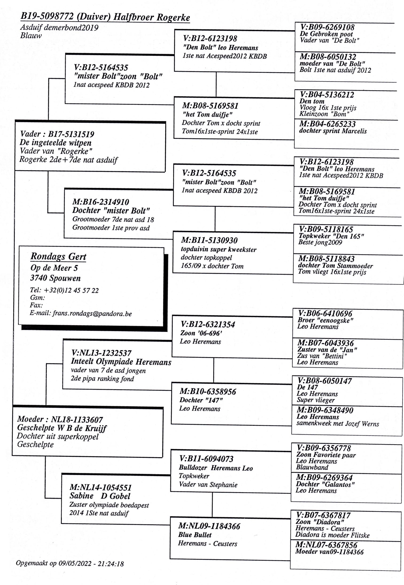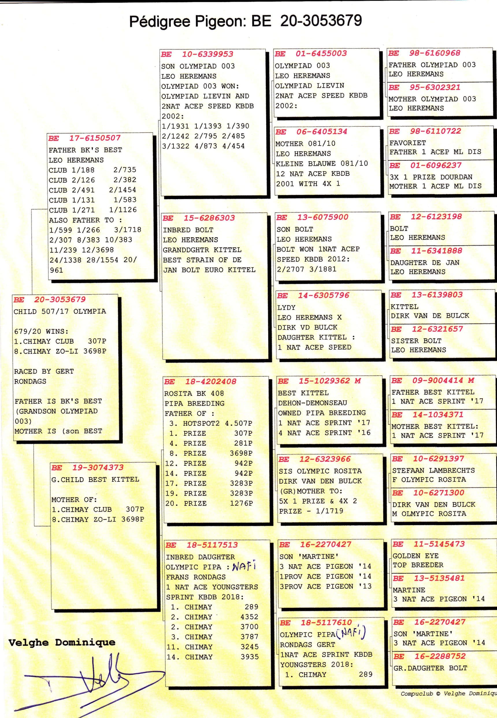 Father BE 17-6150507 Grandson Olympiade 003 Leo Heremans x Line Bolt and Kittel