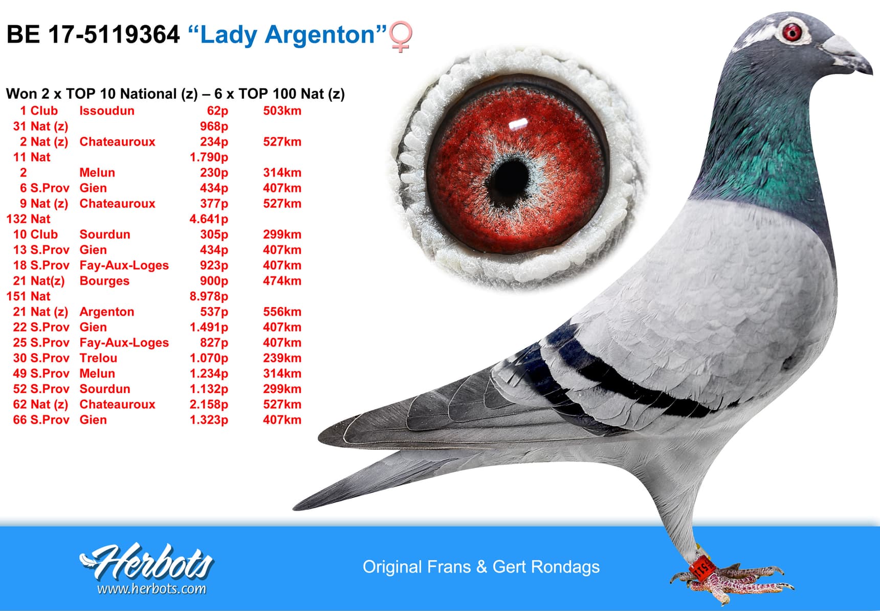 She won herself 11th Nat Chateauroux 1,790b – 9 Nat (z) Chateauroux – 21 Nat (z) Bourges – 21 Nat (z) Argenton and go on like that…A hen that could keep on racing those kilometres.