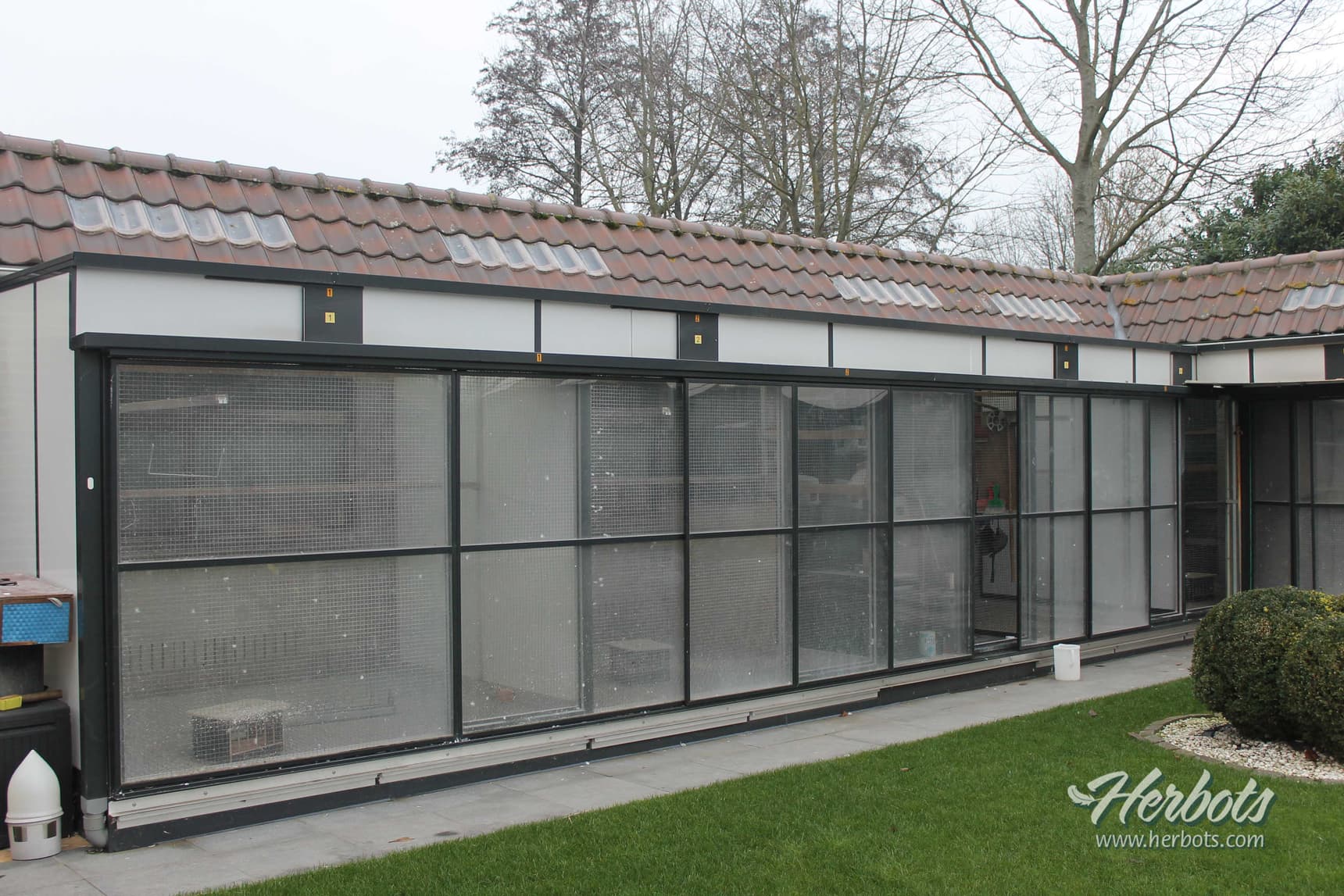 In terms of housing the pigeons, everything is spic and span. The previously existing and already spacious lofts at Geert's home were all fitted with aviaries at the front. This has greatly improved the living conditions in the lofts and also allows us to be very practical. The pigeons can permanently enjoy a spacious oxygen pool and the amount of oxygen in the lofts has been increased. All lofts are equipped with automatic manure trays and grids on the floor.