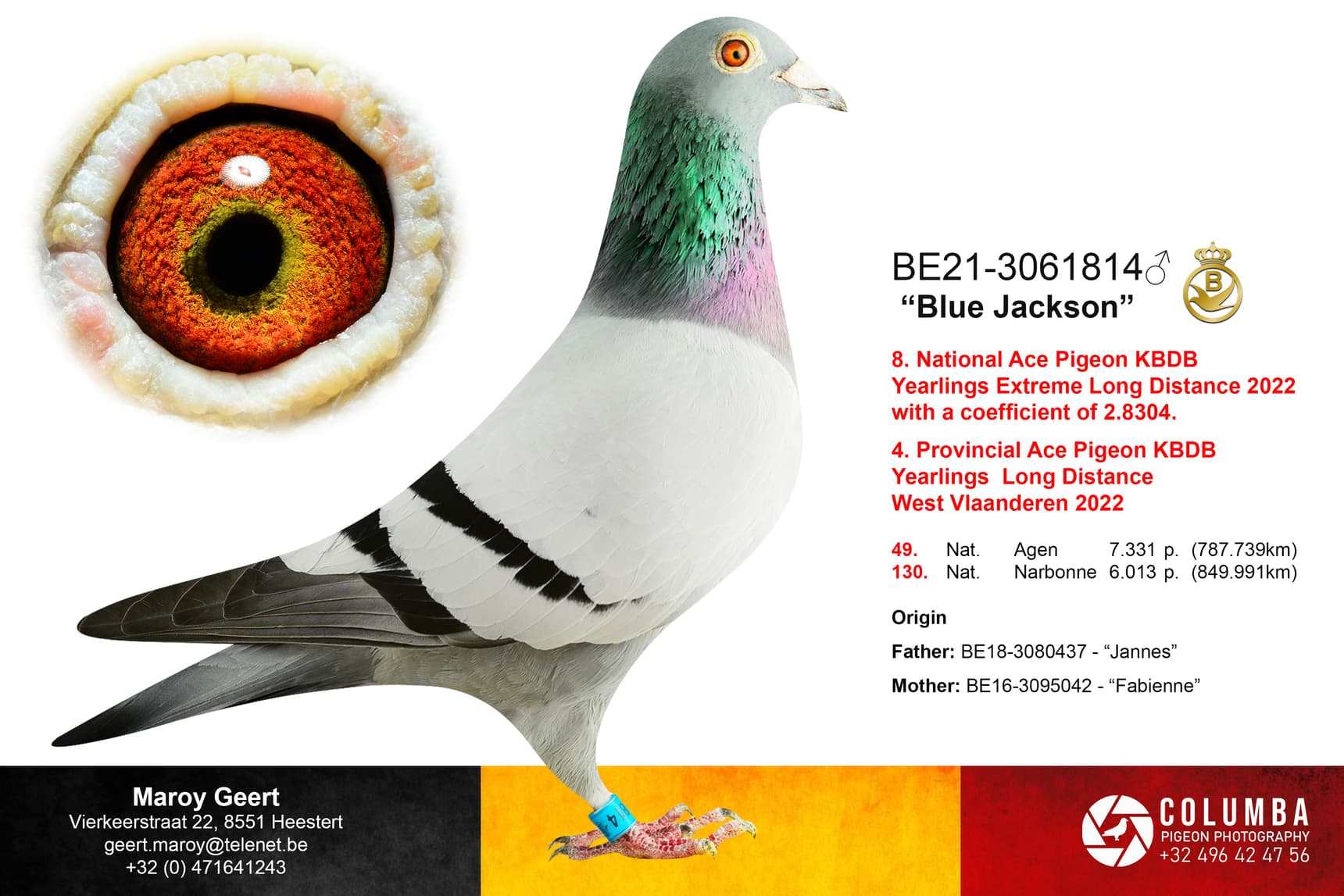 As a yearling, Blue Jackson was not much inferior to his teammate Fritts and won the title of 8th national ace long-distance pigeon and 4th provincial ace yearling pigeon.