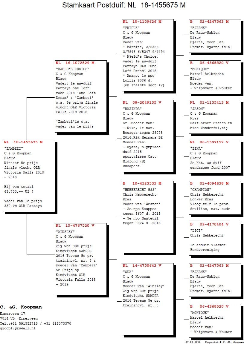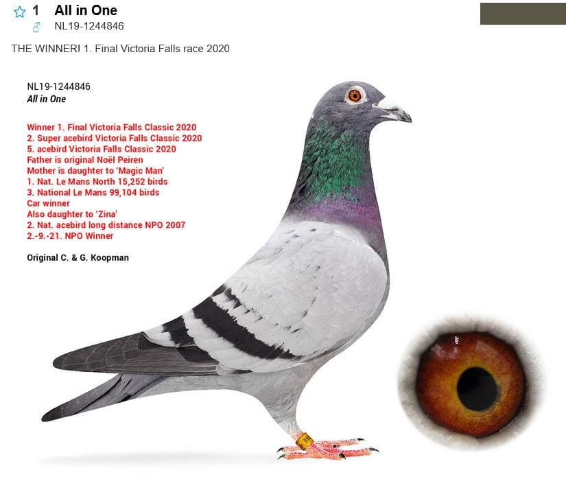 James’ Legend was in 2018 1st ace-pigeon Pioneer club. Winning ao