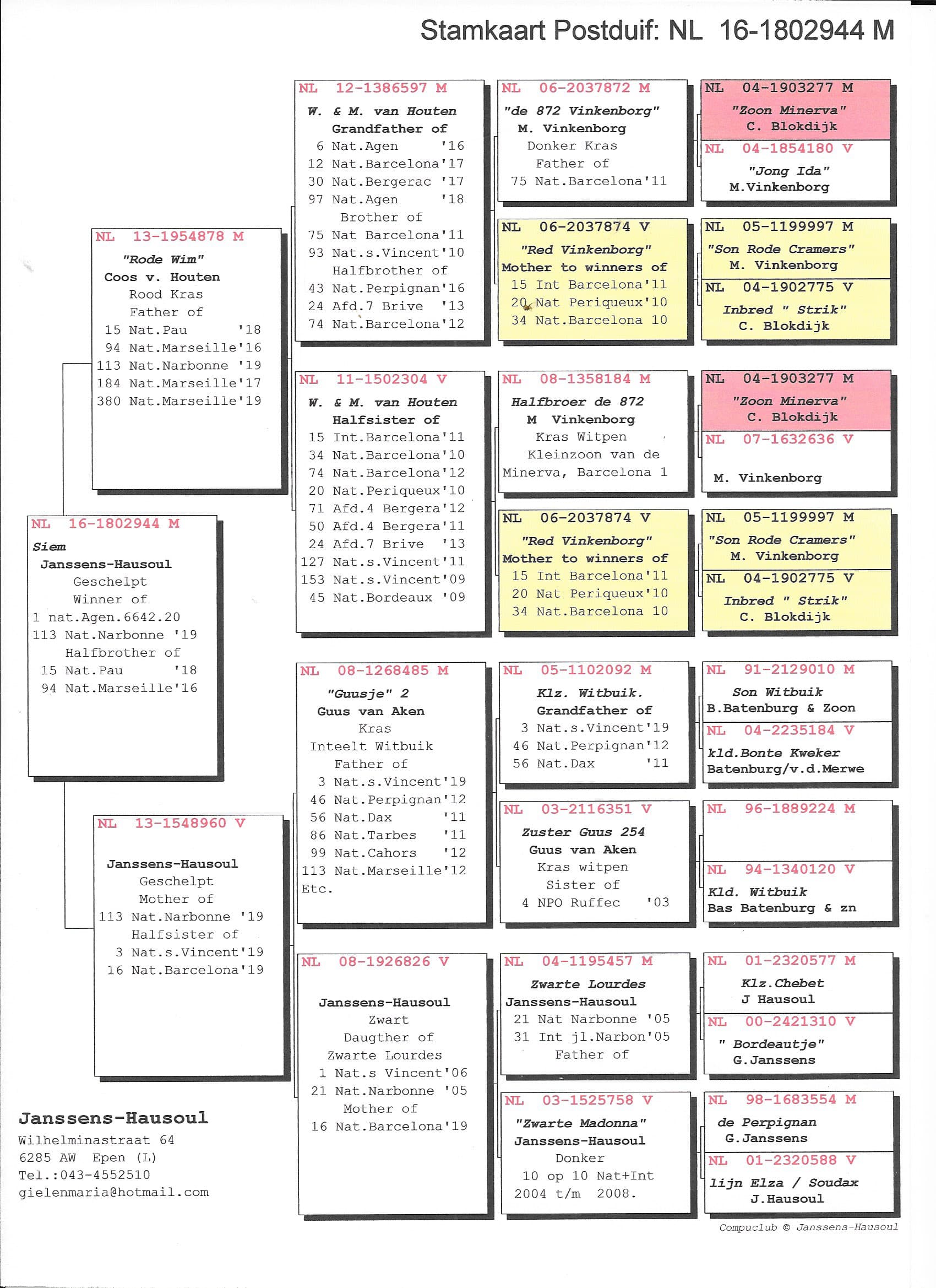 This is the same story as with the winner of Agen, where the mother is a granddaughter of our "Zwarte Lourdes" coupled with strong inbreeding of Coos v.Houten.