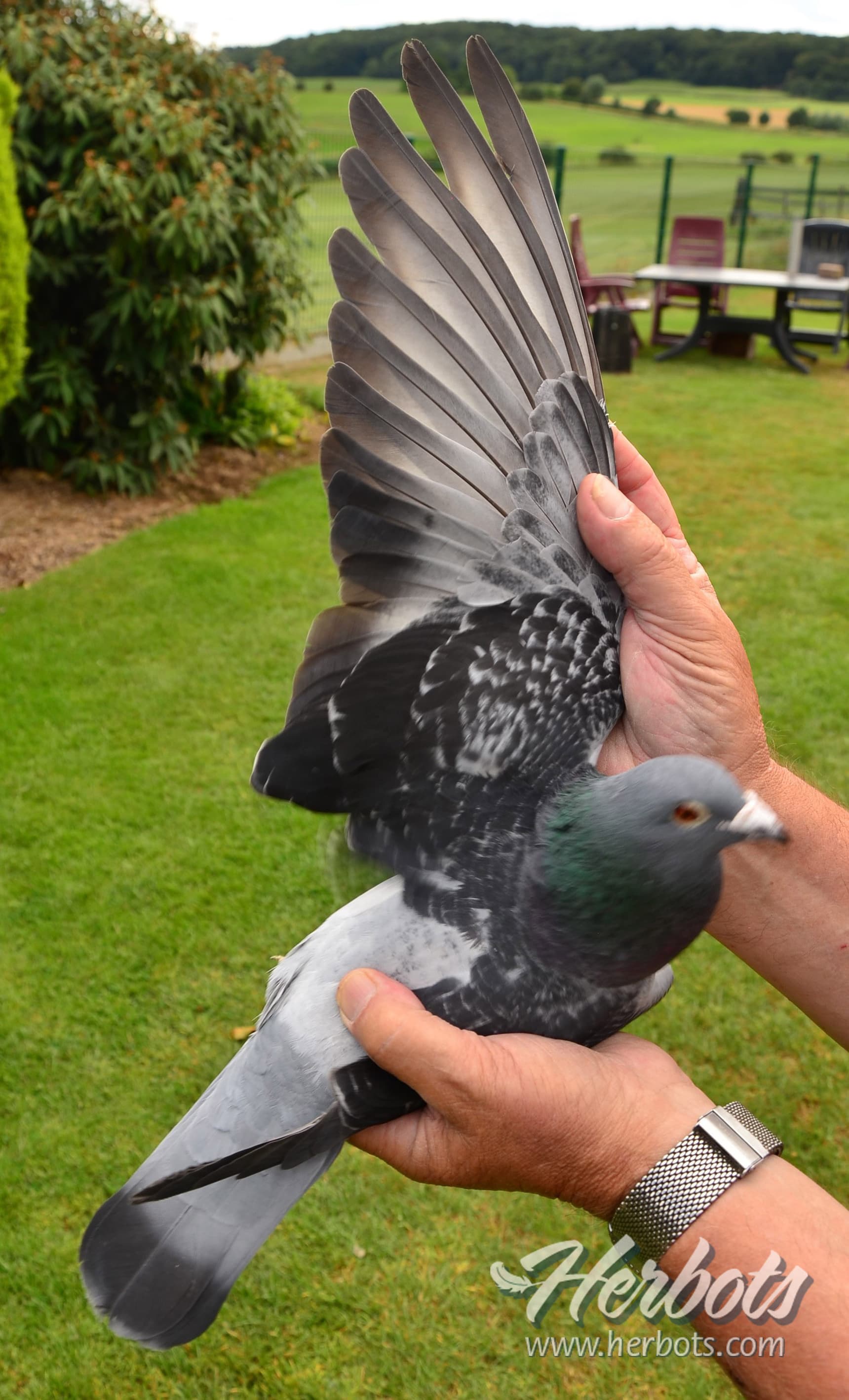 At basketing we only show the hens when they have to go to a heavy long distance race, this during fifteen minutes. When they return home they are locked up together with their hens until the next day.
