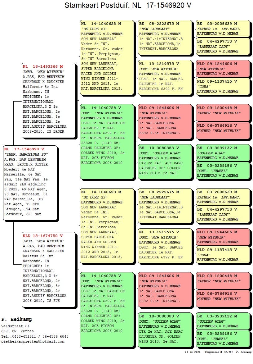 On the first long distance race of the season, Ruffec, it was an instant success for the combination Heikamp & Van Doorn from Zetten. Their top hen ‘Tess’ NL24-8241559, a grandchild of ‘Inbred Barcelona 20’, convincingly won 1st NPO Ruffec against 2534 pigeons and also clocked in 2nd National in Sector 3+4 against 10.364 pigeons. An achievement that is impressive, but certainly no coincidence, given the years of work that have gone into building up this loft.