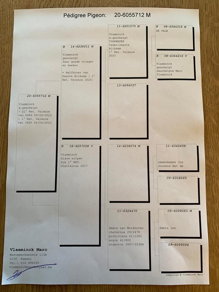 "My national winner was obtained from Marc Vlaeminck. Mark is not only a topper with his pigeons, but also as a person a guy out of a thousand! Sunday he was here and he too was impressed by the "712".