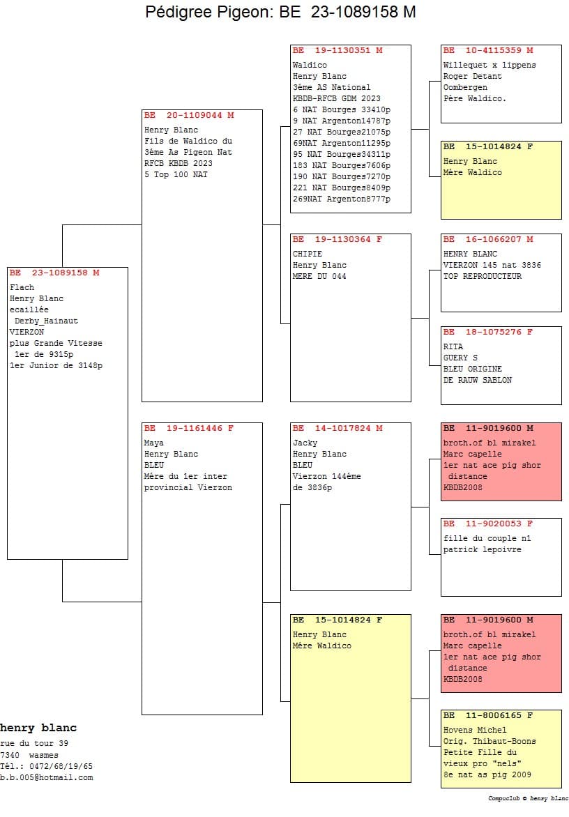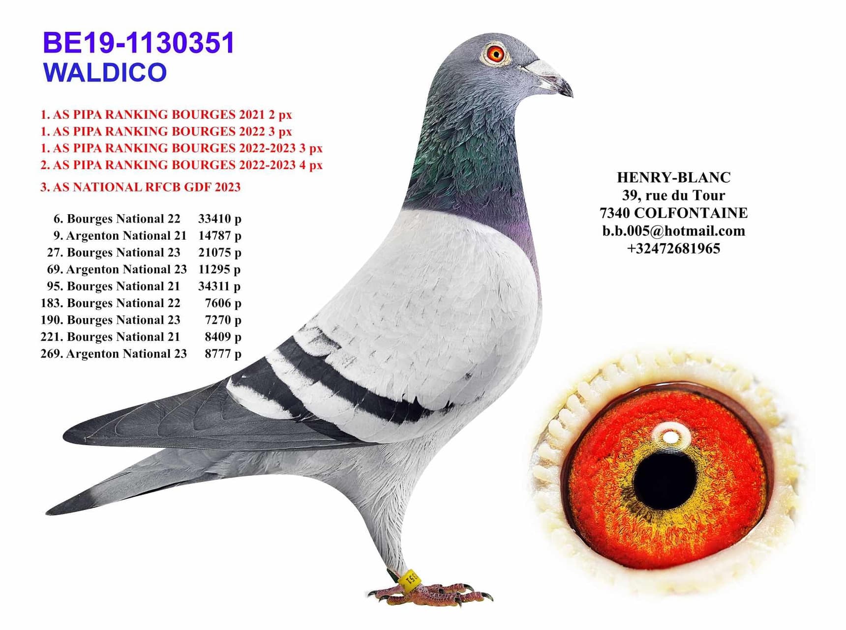 Despite the small racing team, the quality is more than present and this is shown by the results achieved by another pigeon: " Waldico " (BE19-1130351), 3rd Ace National Great middle distance KBDB old 2023, this is a real crack with 5 x top 100 National on Bourges/Argenton and undoubtedly one of the best pigeons in Belgium on Bourges in recent years. " Waldico " is currently in the breeding loft. A yes... the winner from Vierzon is a grandson of Waldico.