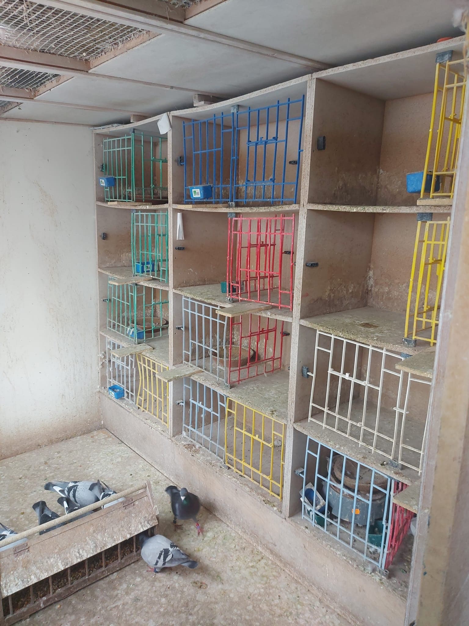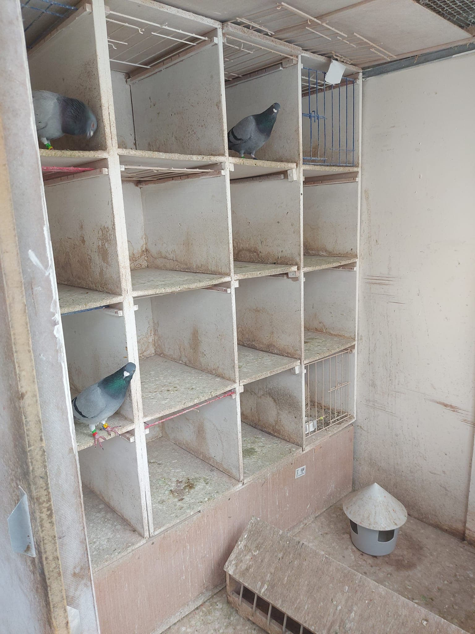 The 8 old widowers are paired a first time in December (at the same time as the breeders), raise 2 youngsters and are paired a second time in March, to start widowhood after 5 days of incubation. Training is done once a day, during the afternoon. Each year, 60 youngsters are ringed and played only on speed.