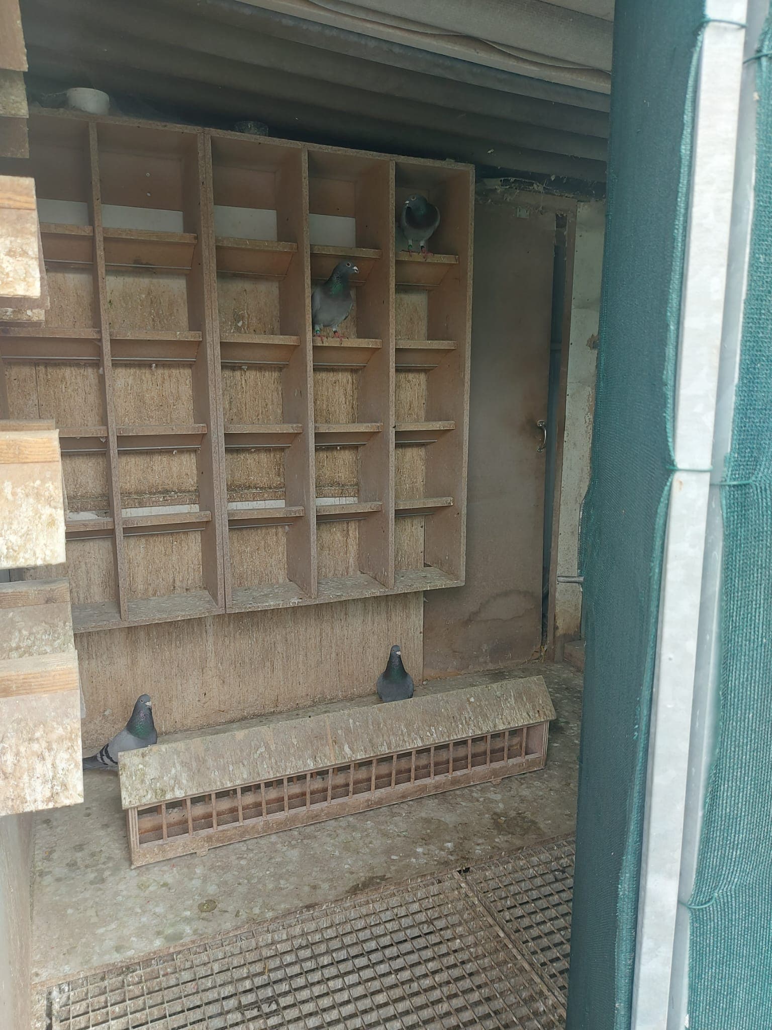 This is a very small colony, as Jean-François HENRY has 10 breeding couples and 30 racers (8 old and 22 yearlings). The 8 old are raced according to the classic widowhood method, but the yearlings are single because there are not enough hens available. The yearlings are therefore in a loft with only youngsters' boxes.
