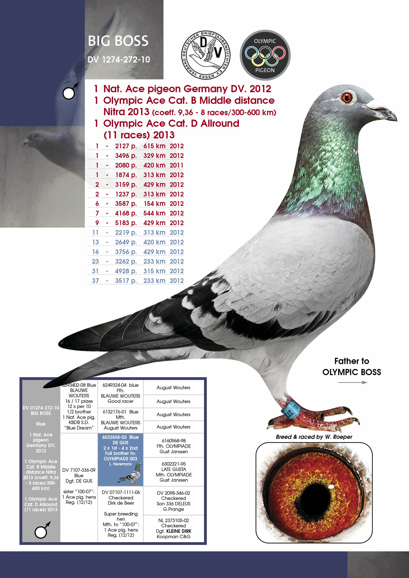‘Big Boss’ (DV01274-10-272 – Olympiad pigeon Nitra) is father of ‘Olympic Boss’ (B14-2313054 – Olympiad pigeon Brussels) …