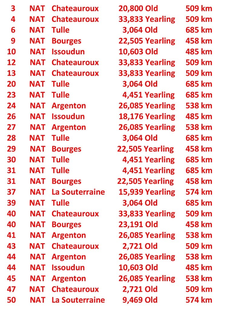 Issoudun       1,484 Yearlings    S.Nat ACRWB                     485 km :