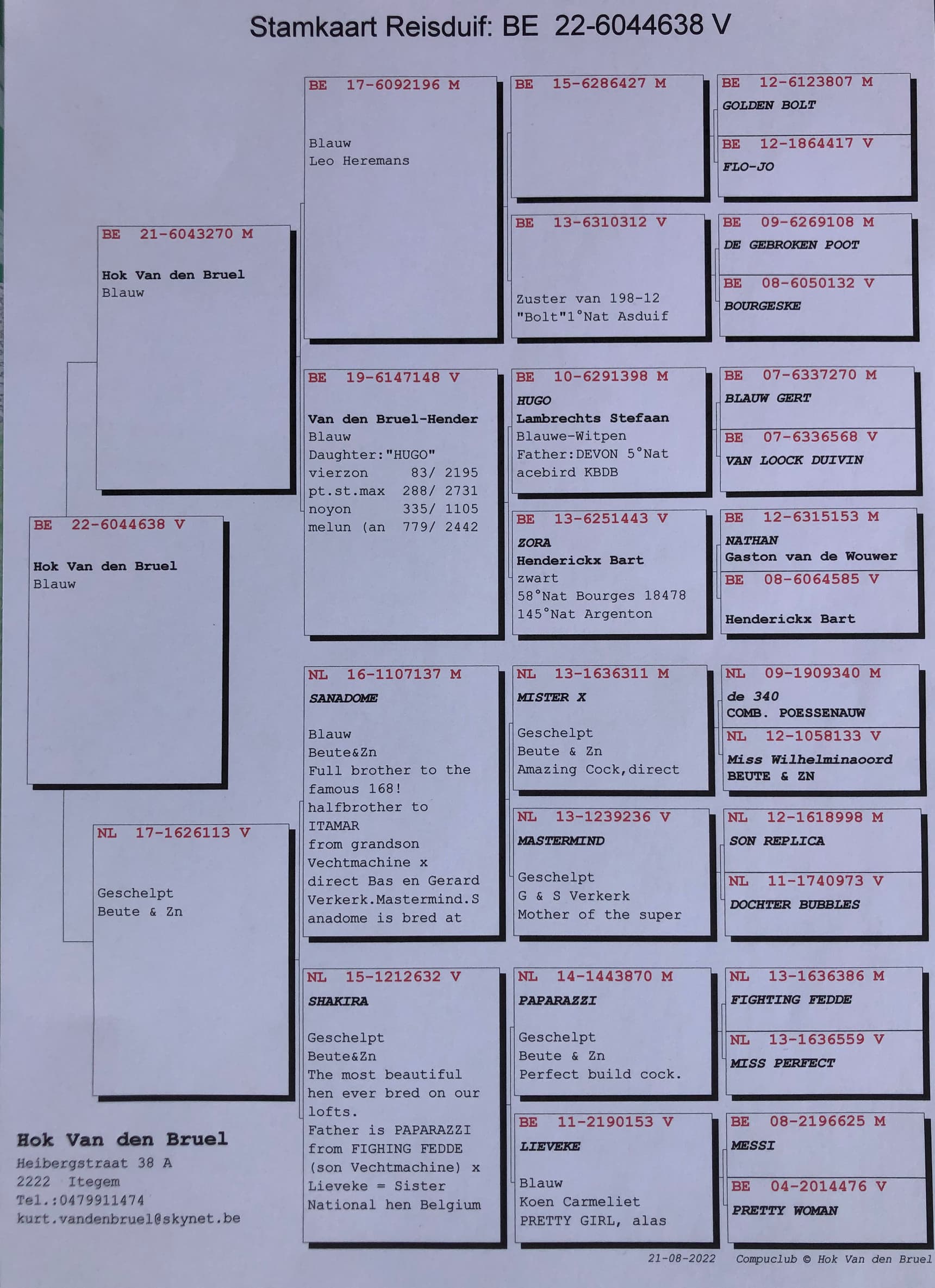 Daughter “BE 10-398” Hugo – Stefaan Lambrechts x “BE 13-443” Zora