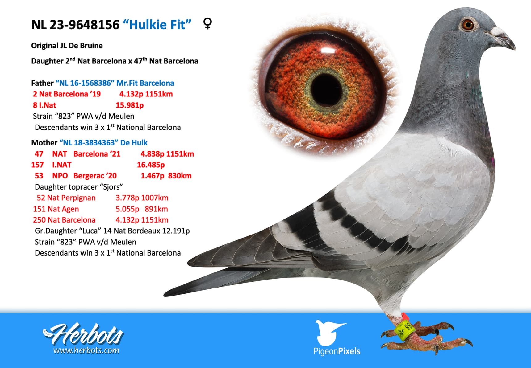 Daughter from “894/10” Luca won 2 NPO Bordeaux x “058/11” Spierbundeltje. Daughter from “Crack 061” descendants win 3 x 1st National and son base breeder “Superbreeder 823” PWA v/d Meulen