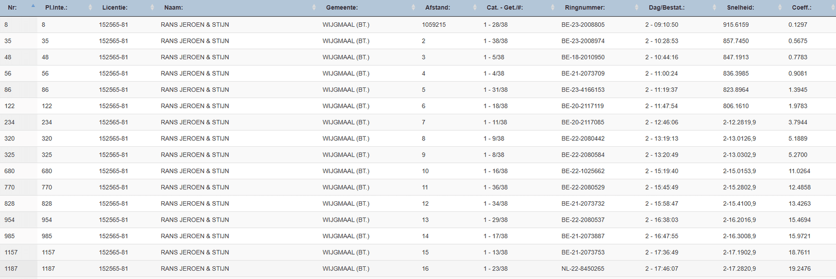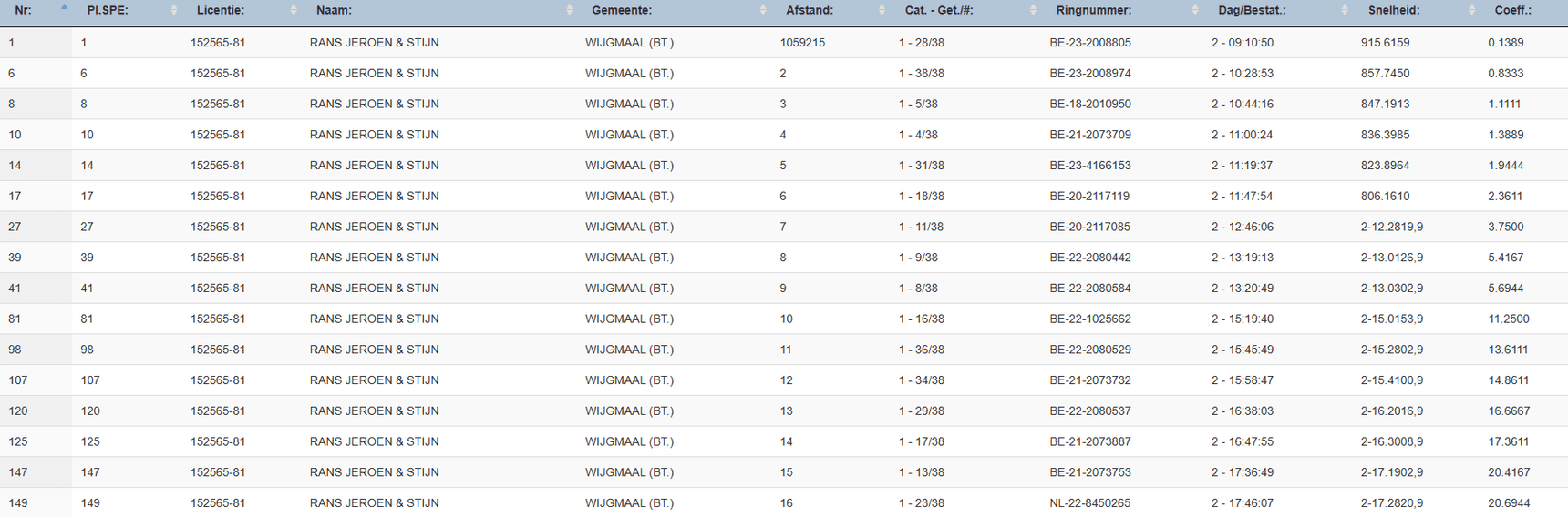 This win was no coincidence. In Wijgmaal, the birds returned in fine rhythm, resulting in no fewer than 9 pigeons in the top 50 provincially:
