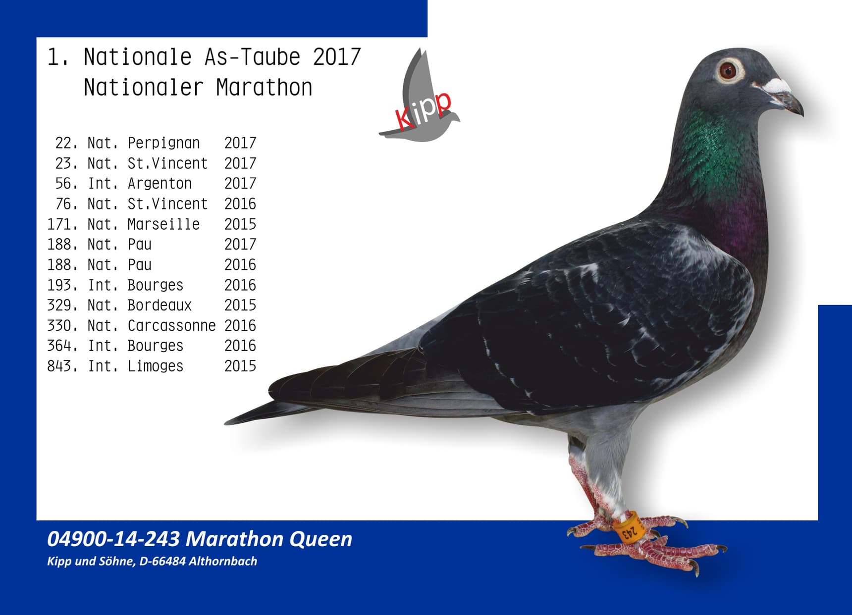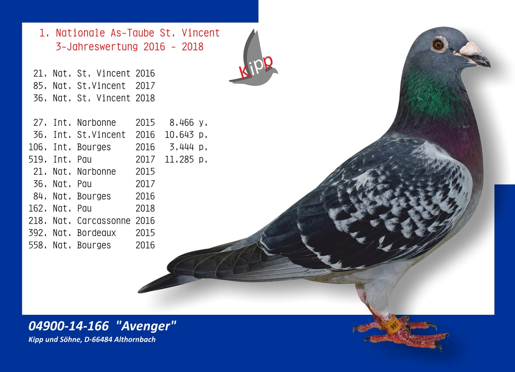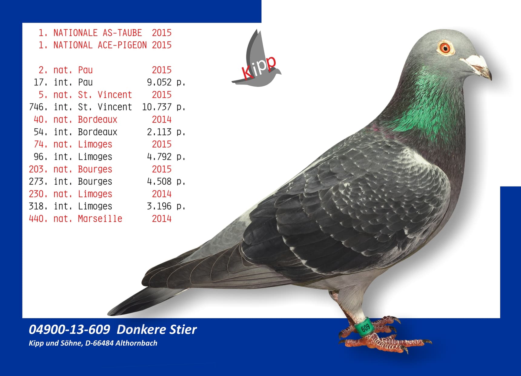 Althornbach: The name KIPP UND SOHNE stands for HIGH QUALITY when it concerns marathon birds. In 1998 the name KIPP became world-famous by winning 1st International Barcelona !