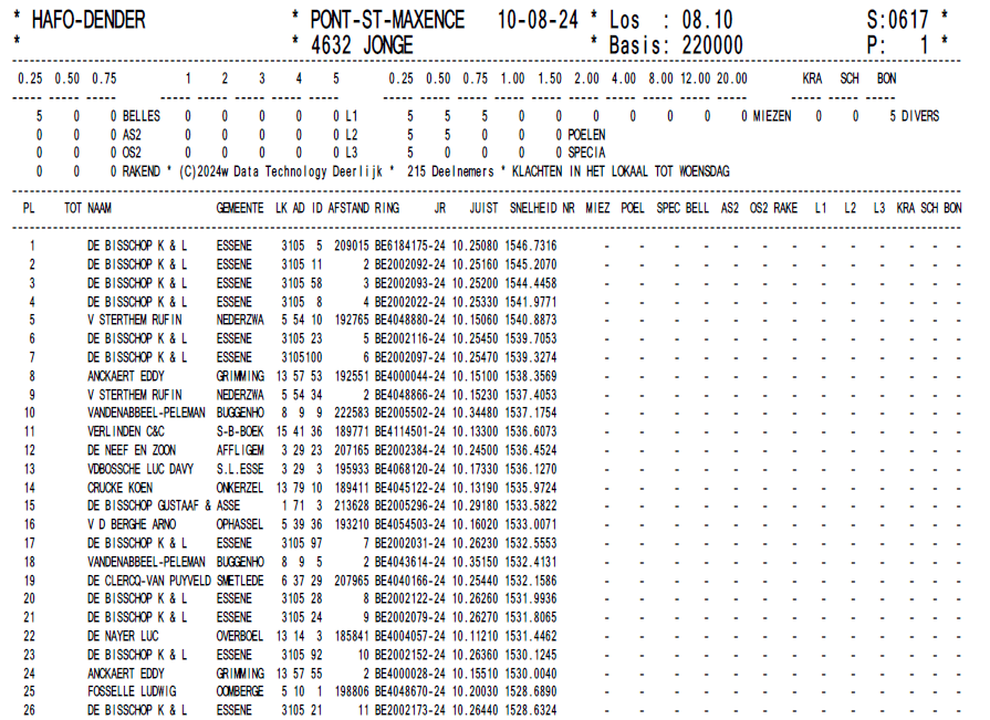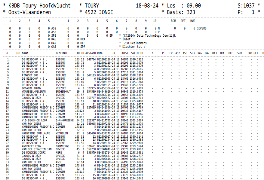 The winner of Pont is BE 23-2098617, this hen has already won 4 clear first prizes and will become one of the top pigeons in the upcoming auction in the autumn.