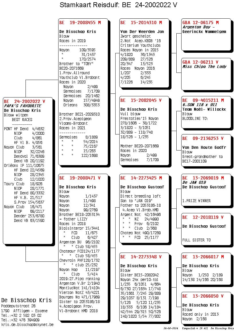 He is a full brother of “Bieke” 15 World best pigeon All Round 2022