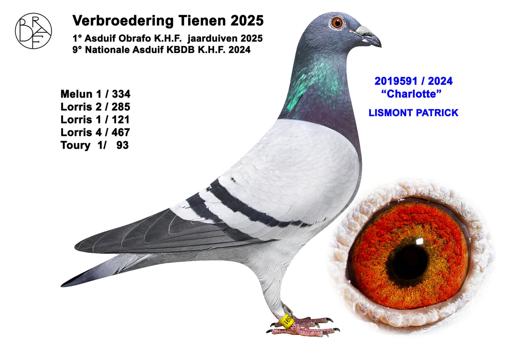 Nestmate of “Lotte” 2nd National Ace Pigeon Small Middle Distance KBDB 2024 and 11th National Ace Pigeon Small Middle Distance Young Birds KBDB 2023