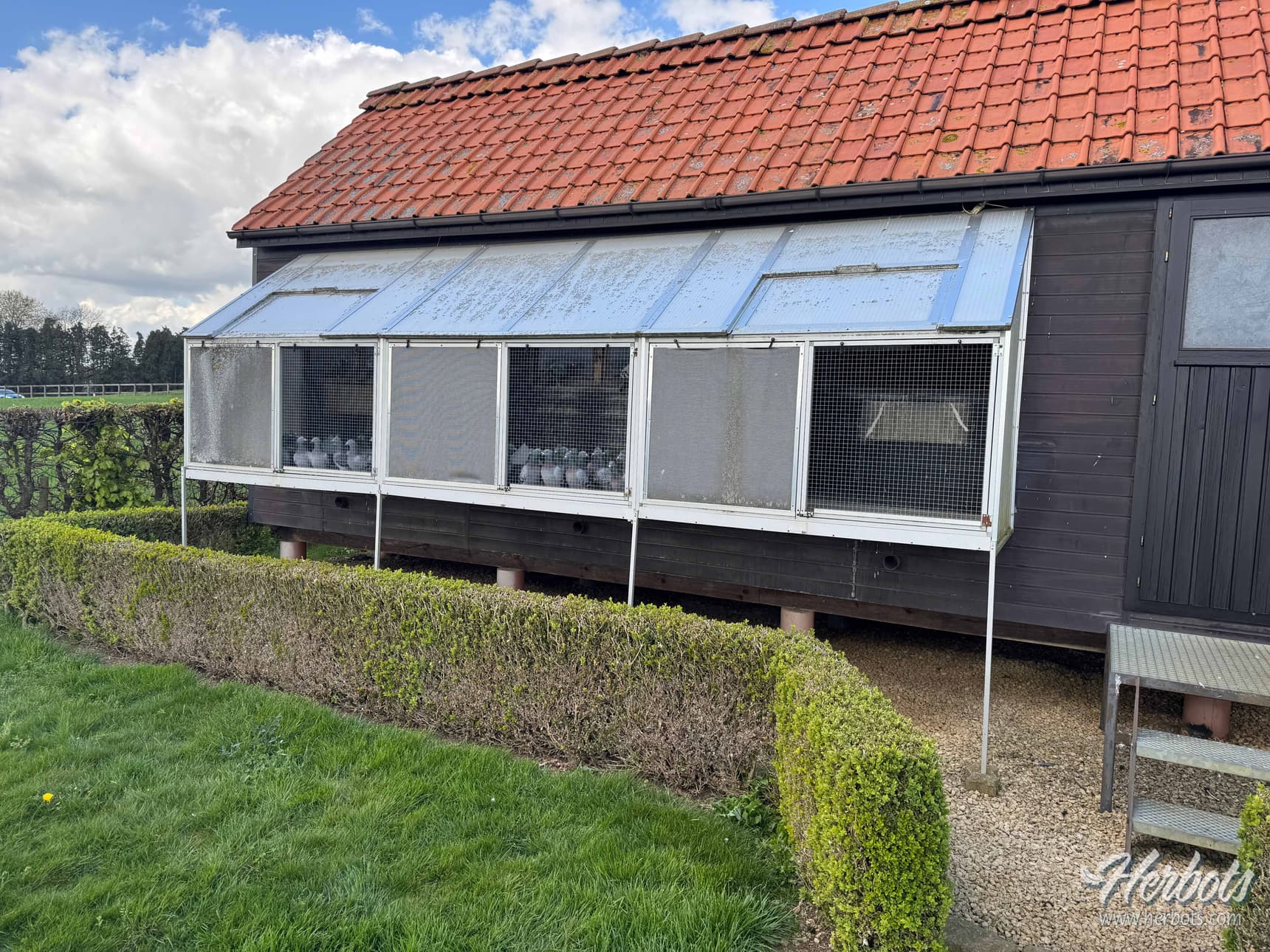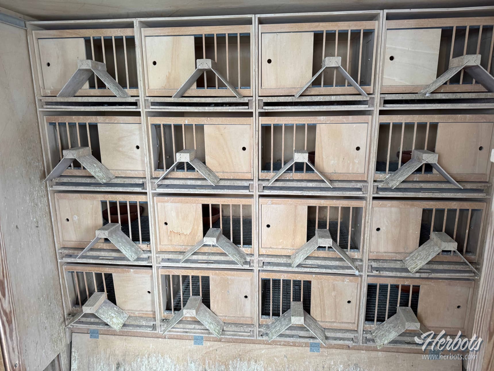 Yes, I have that system completely under control and feel very good about it. During the day, the hens are kept in two small aviaries where they have nothing but grids underneath them. These are only open at the front; otherwise, they are closed. Once they have finished training, they are allowed to eat inside and then move to the indoor resting loft. In the summer, when it stays light for a long time, I let them stay in the aviary even later because they mate more easily then than in April with the colder temperatures. In my system, this isn't really a resting loft, as I simply hang small dormer windows in front of their nesting boxes, and wooden grids are provided on the floor.