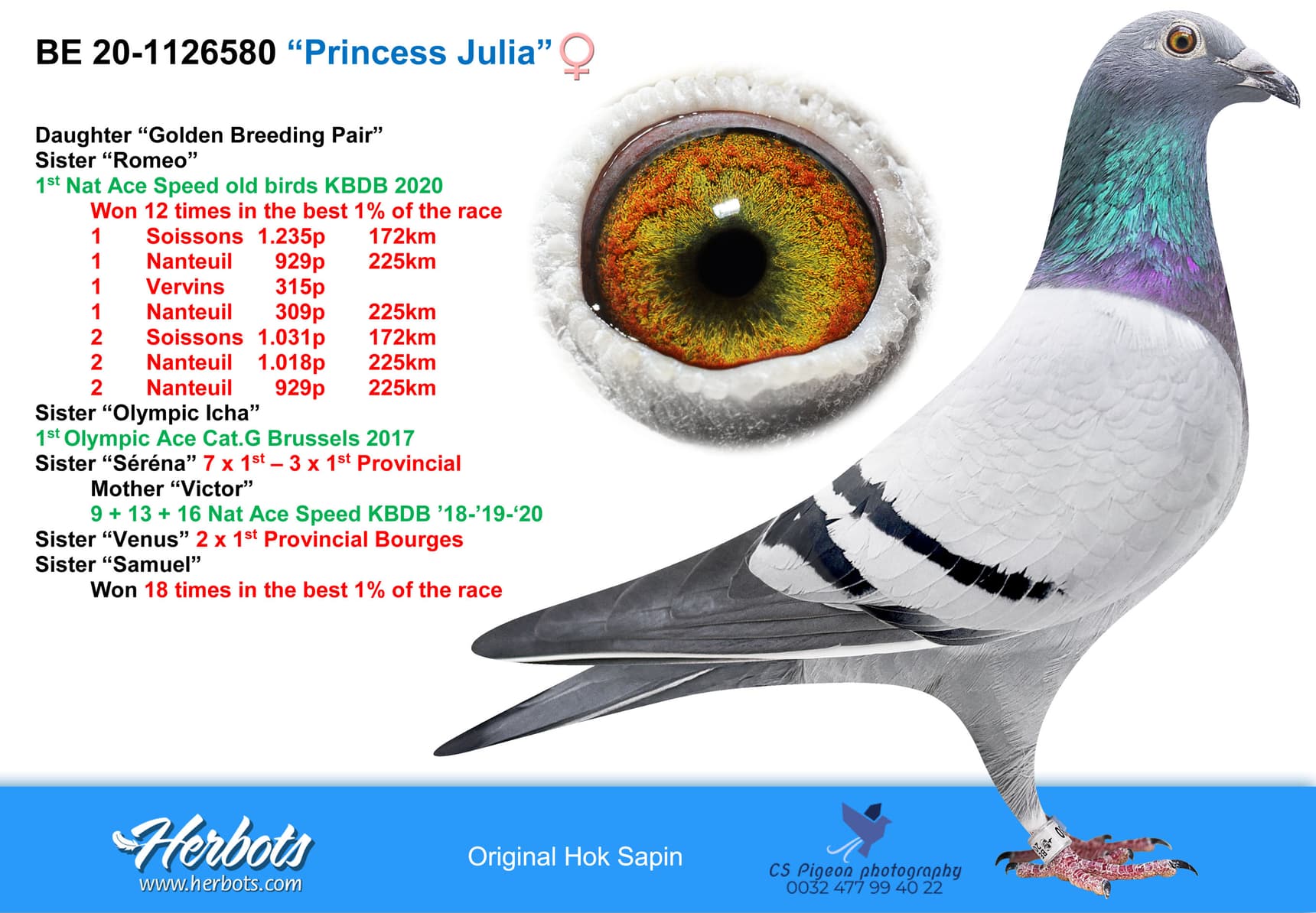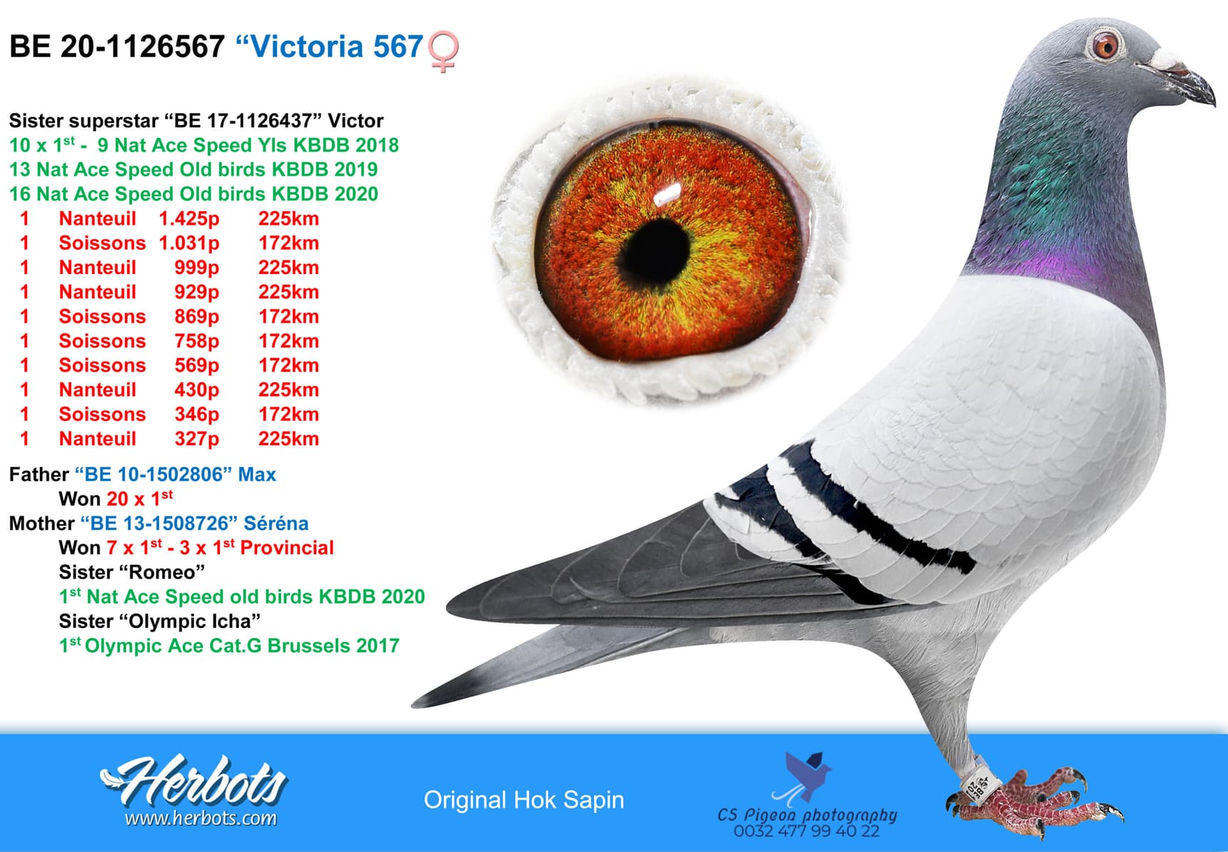 Full sister to super star “Victor” with 10 x 1st and 9+13+16 National Ace bird Short Distance KBDB ’18+’19+’20
