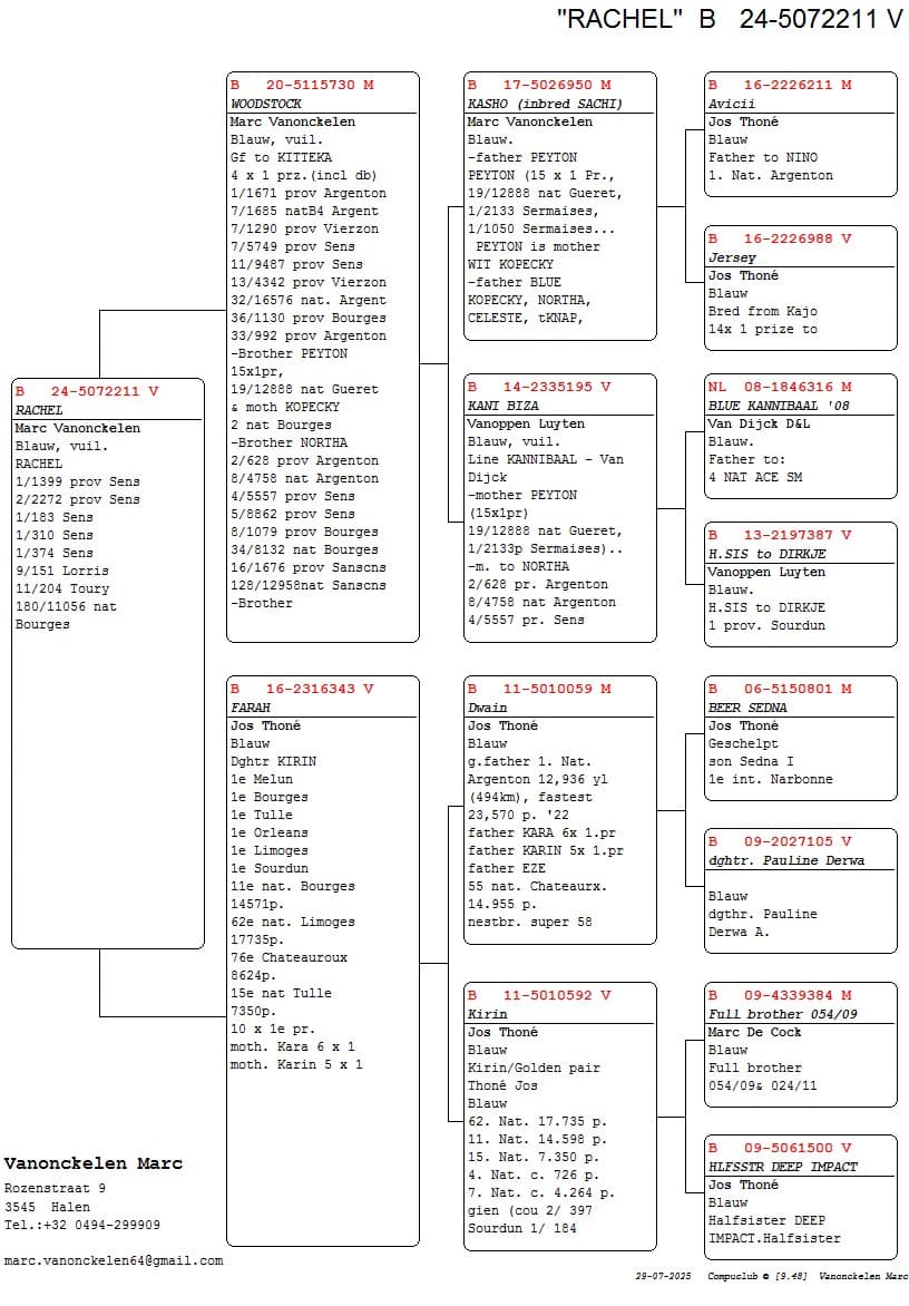 He is the grandfather of "Kitteka" 1st Prov Argenton 1,672p. – 7th Prov Sens 5,749p. – 7th Nat (z) Argenton 1,685p. – 7th Prov Vierzon 1,290p. – 11th Prov Sens 9,487p. – 13th Prov Vierzon 4,342p